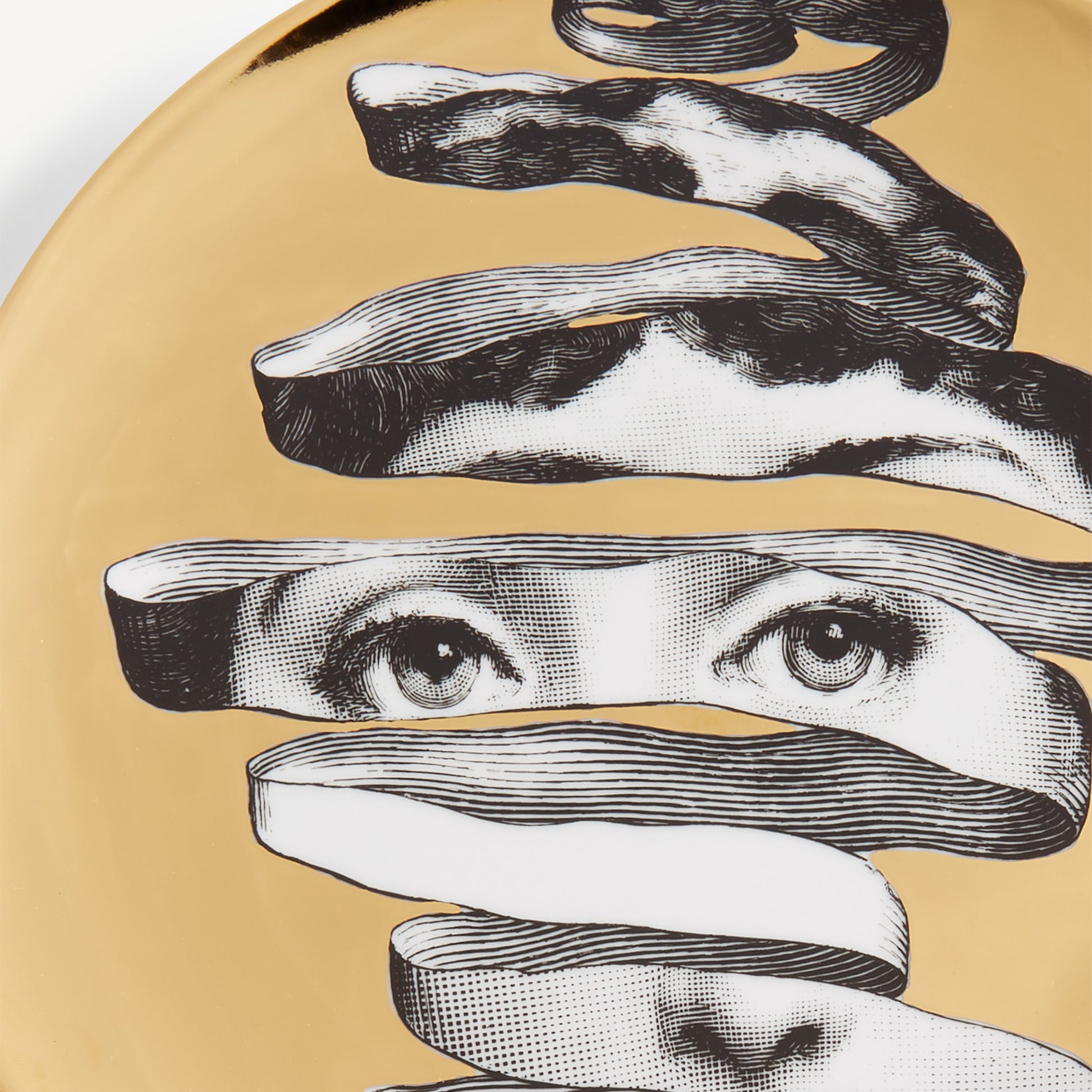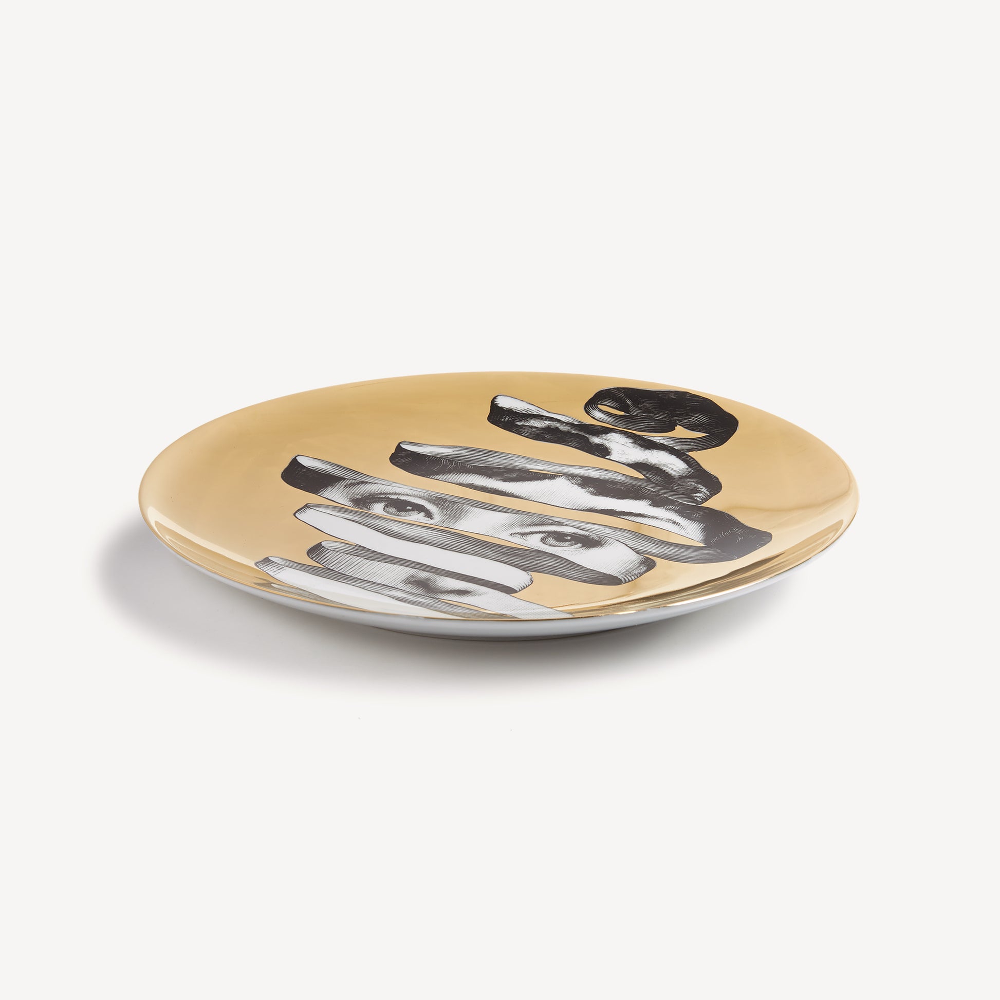 - L’iconique série Tema e Variazioni se dénoue autour des déclinaisons du visage de la chanteuse lyrique Lina Cavalieri par la main de Fornasetti. Cette assiette en porcelaine décorée à la main avec des accents dorés se présente comme un objet prisé des collectionneurs et des amateurs d’art. À vous de choisir si l’utiliser comme assiette décorative murale, grâce aux deux trous percés à l’arrière, ou comme fonction ornementale pour l’art de la table. Pour le nettoyage, utiliser de préférence un chiffon humide sans détergent.