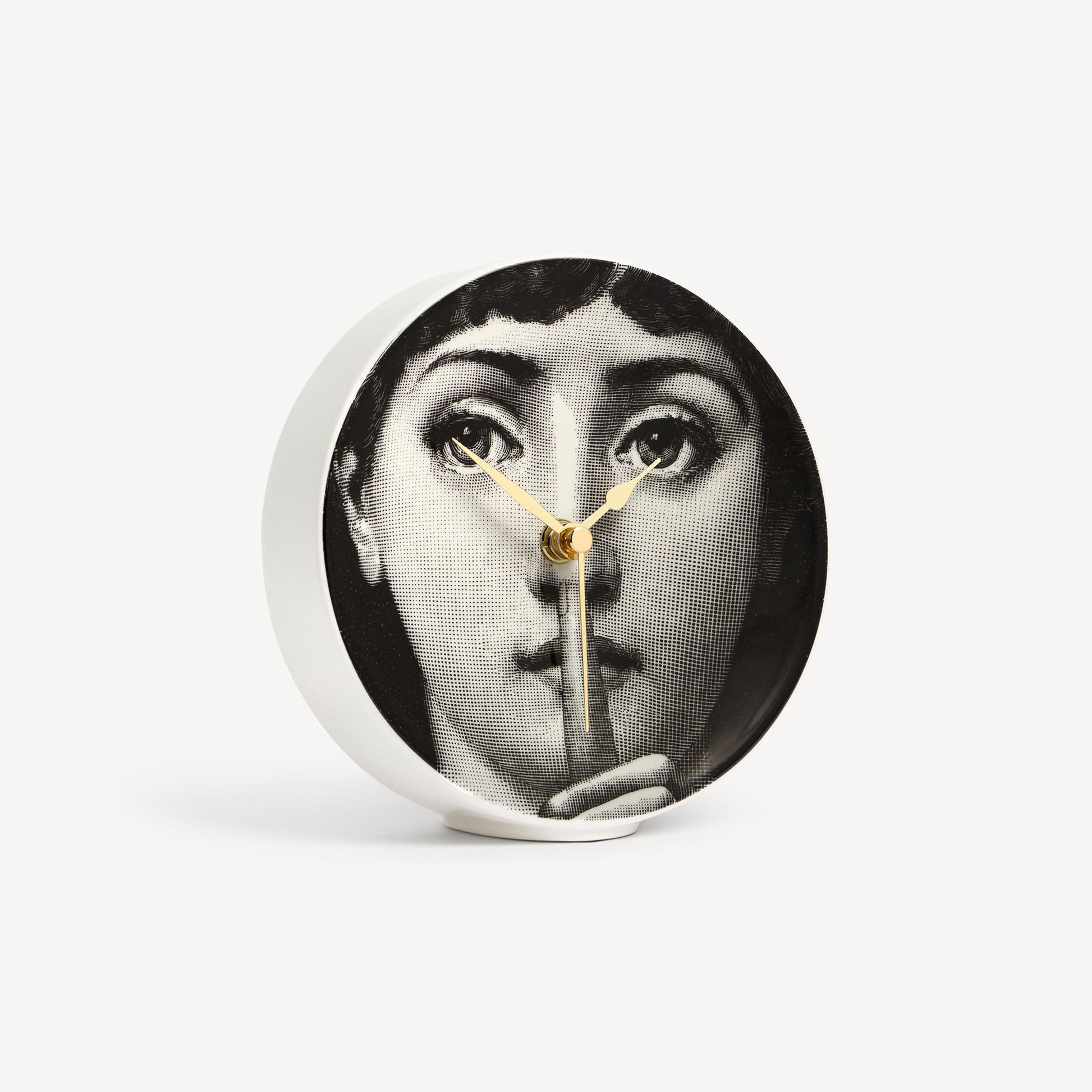 - L’horloge de table Fornasetti rejoint la collection d’accessoires pour la maison et enrichit les bureaux, les bibliothèques, les tables de chevet d’un accessoire qui sort de l’ordinaire.