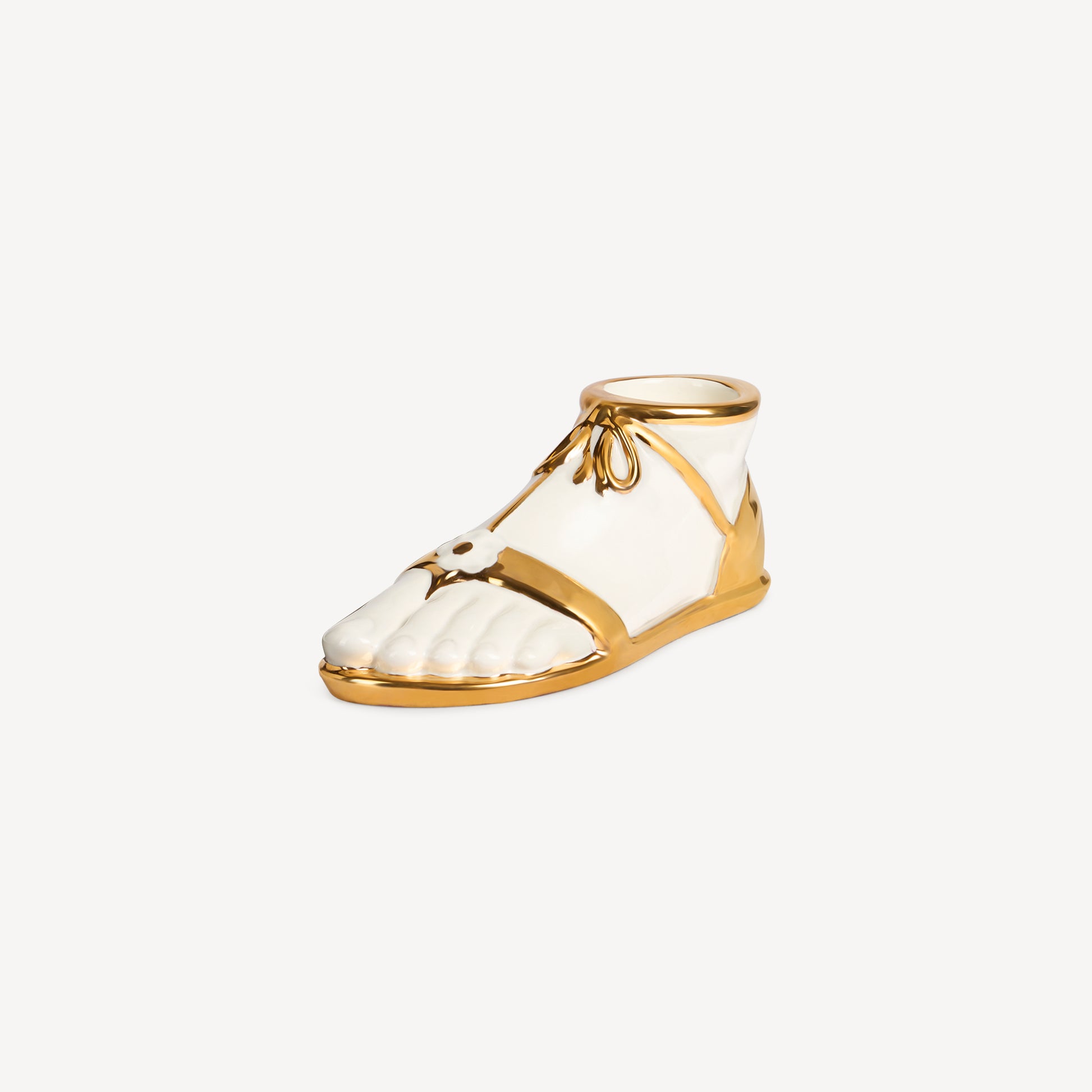 - Hommage au monde classique, cette nouvelle bougie en céramique avec de précieux détails dorés se caractérise par la forme d’un pied romain, faisant écho à l’esthétique des imposantes statues de la Rome antique.