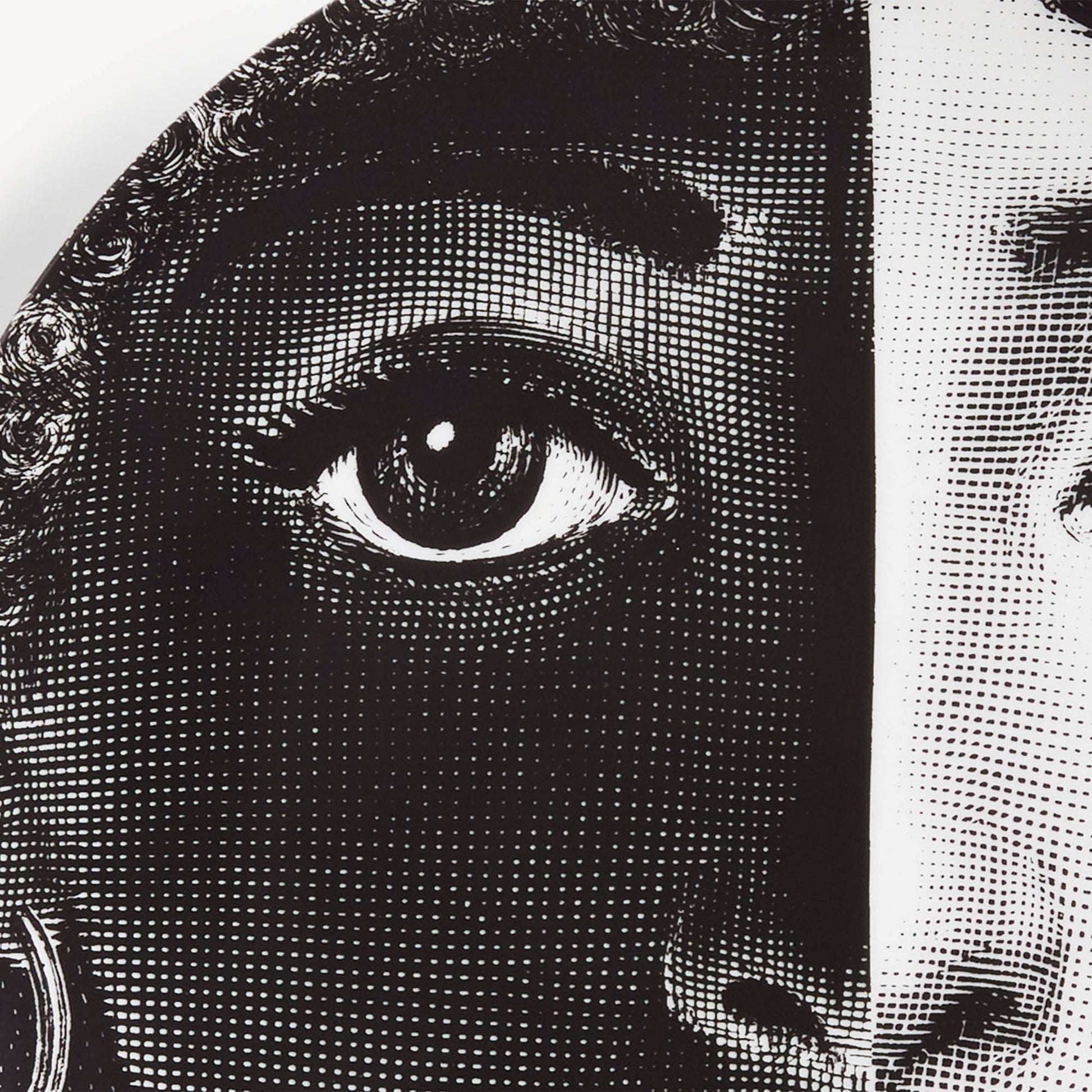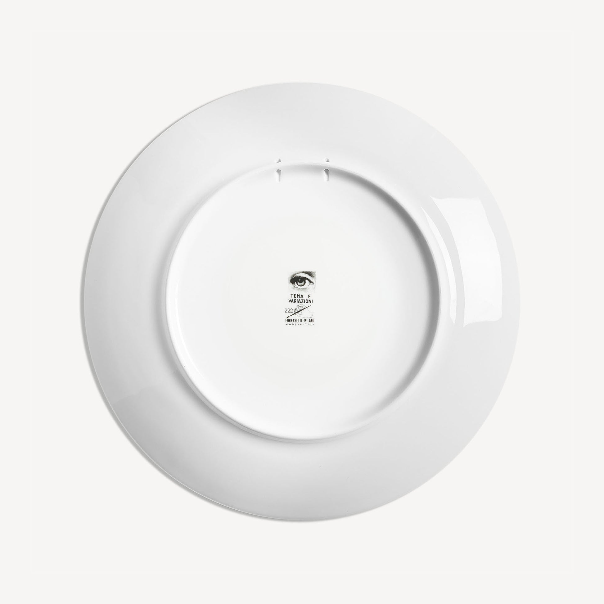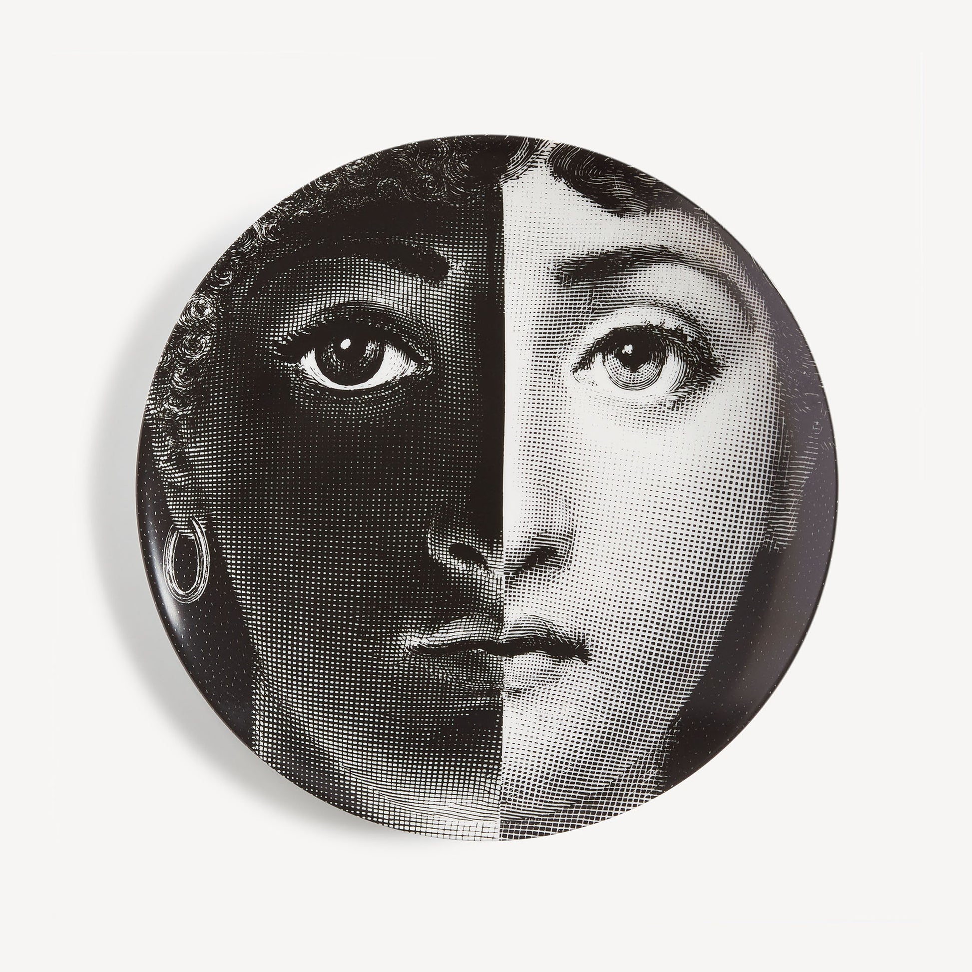 - Jouant gaiement à revisiter les traits inimitables de Lina Cavalieri, Fornasetti propose la série Tema e Variazioni, dont cette assiette en porcelaine décorée à la main est issue : une authentique pièce de collection, à vous de choisir si l’exposer comme assiette décorative murale, grâce à ses deux trous percés à l’arrière, ou comme élément ornemental pour l’art de la table. Pour le nettoyage, utiliser de préférence un chiffon humide sans détergent.