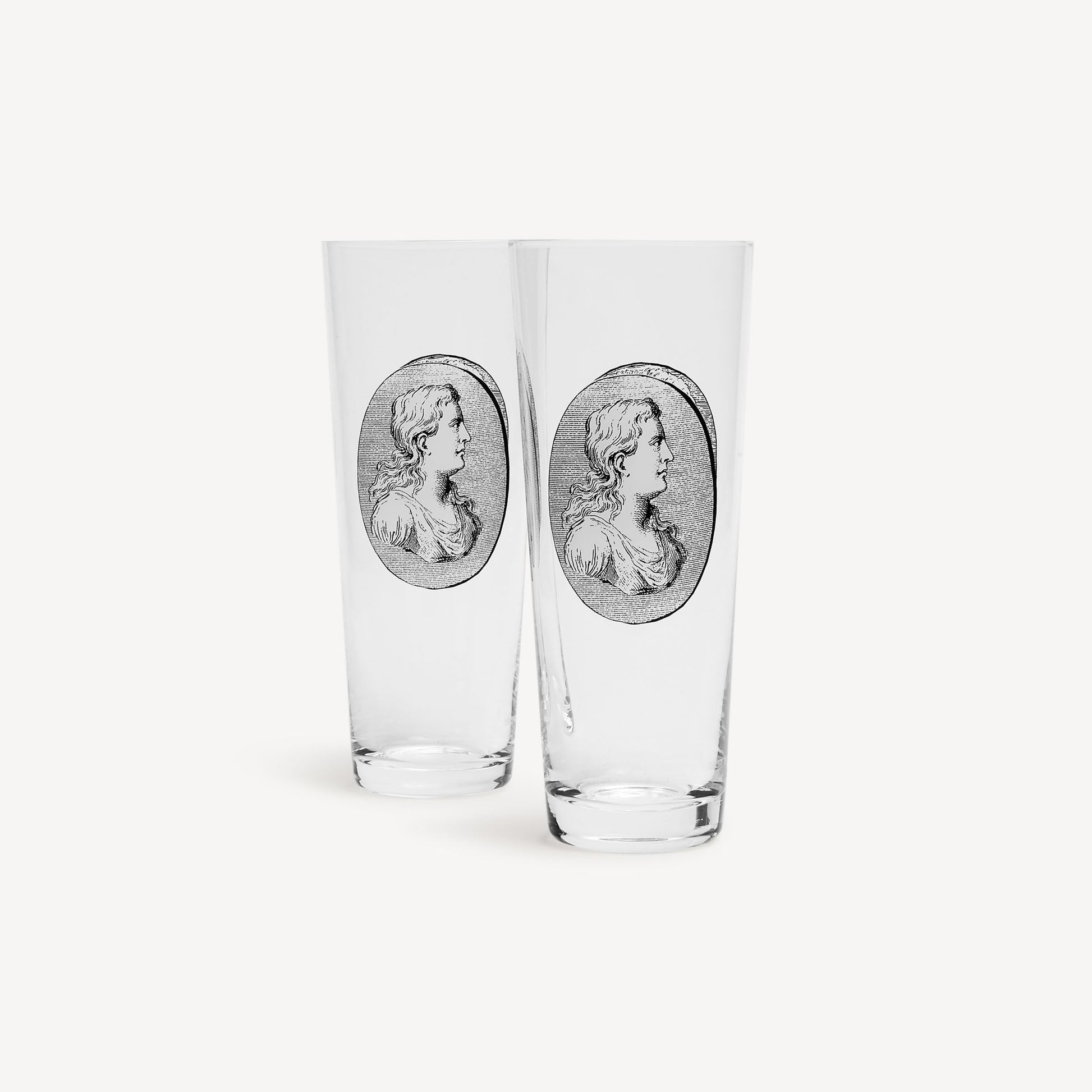 - Ce lot de deux verres à soda Fornasetti conjugue un design raffiné à l’inimitable motif Cammei : une évocation du classicisme selon Fornasetti.