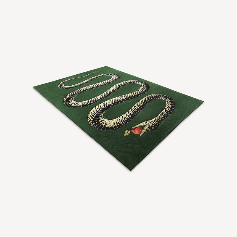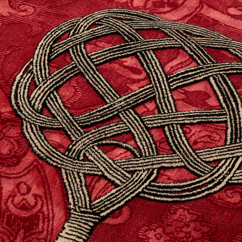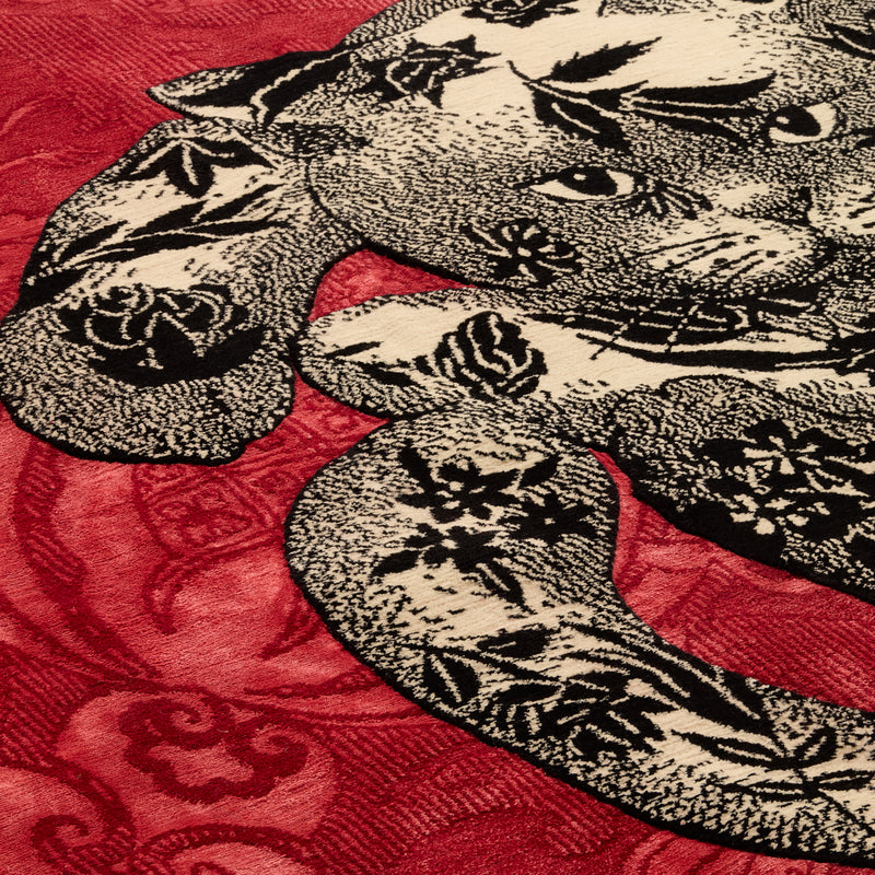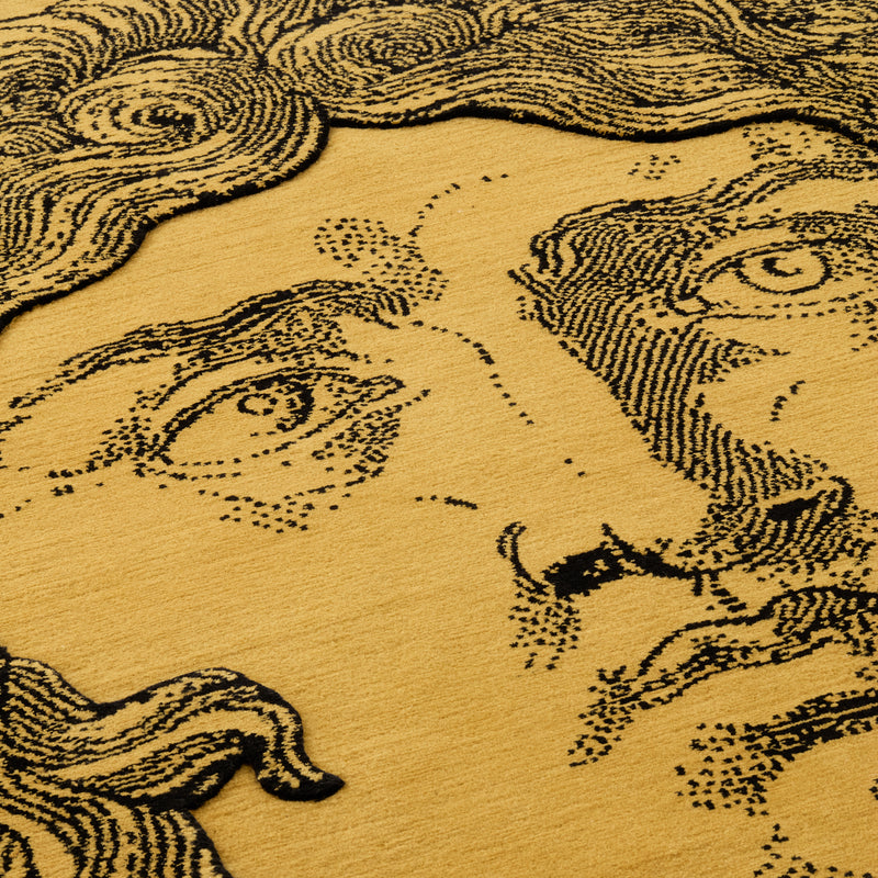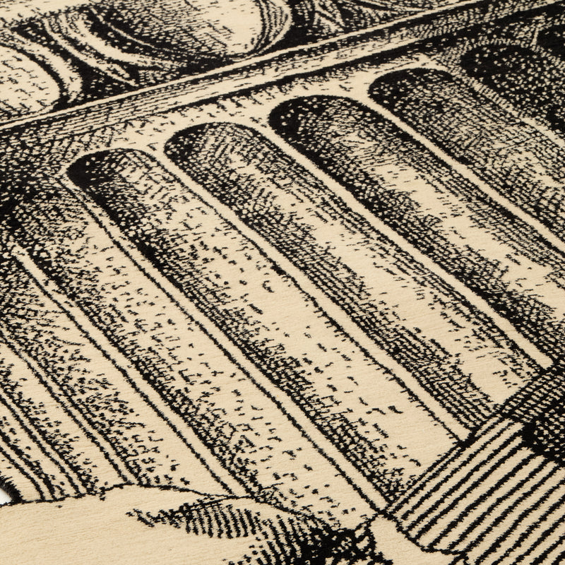La pièce centrale célèbre l’univers ludique et libre de Fornasetti. Noué à la main au Népal selon un procédé artisanal d’exception, il est produit en édition limitée.