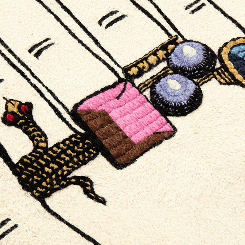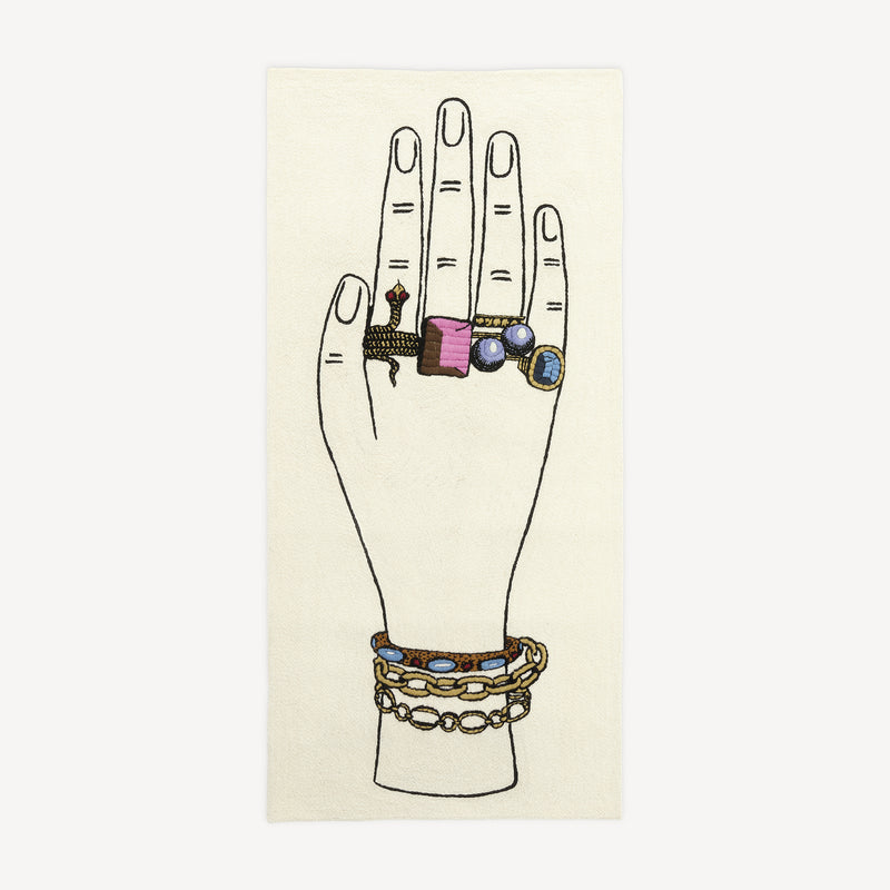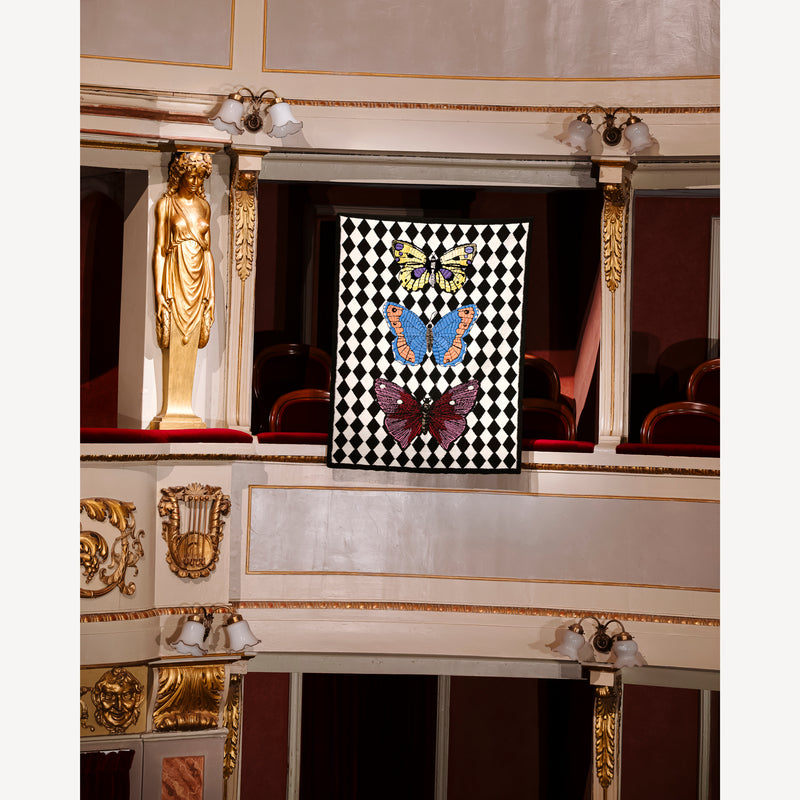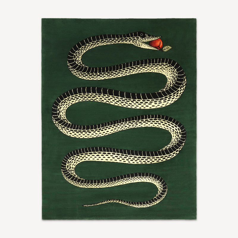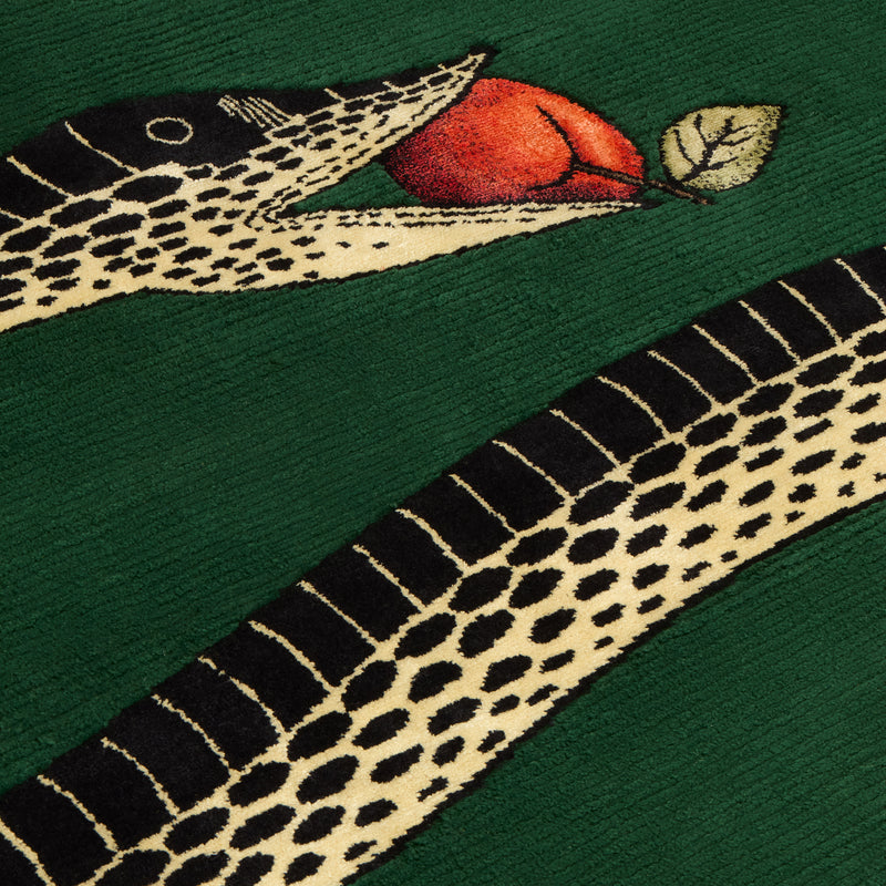 La pièce centrale célèbre l’univers ludique et libre de Fornasetti. Noué à la main au Népal selon un procédé artisanal d’exception, il est produit en édition limitée.
