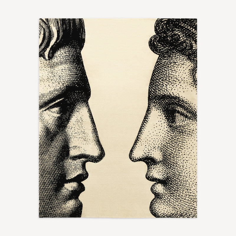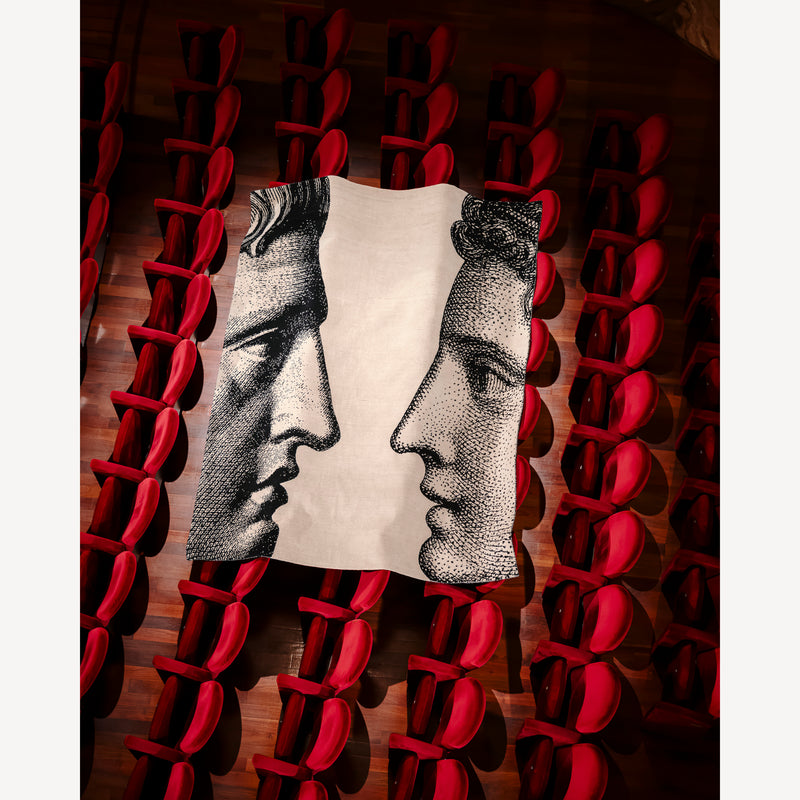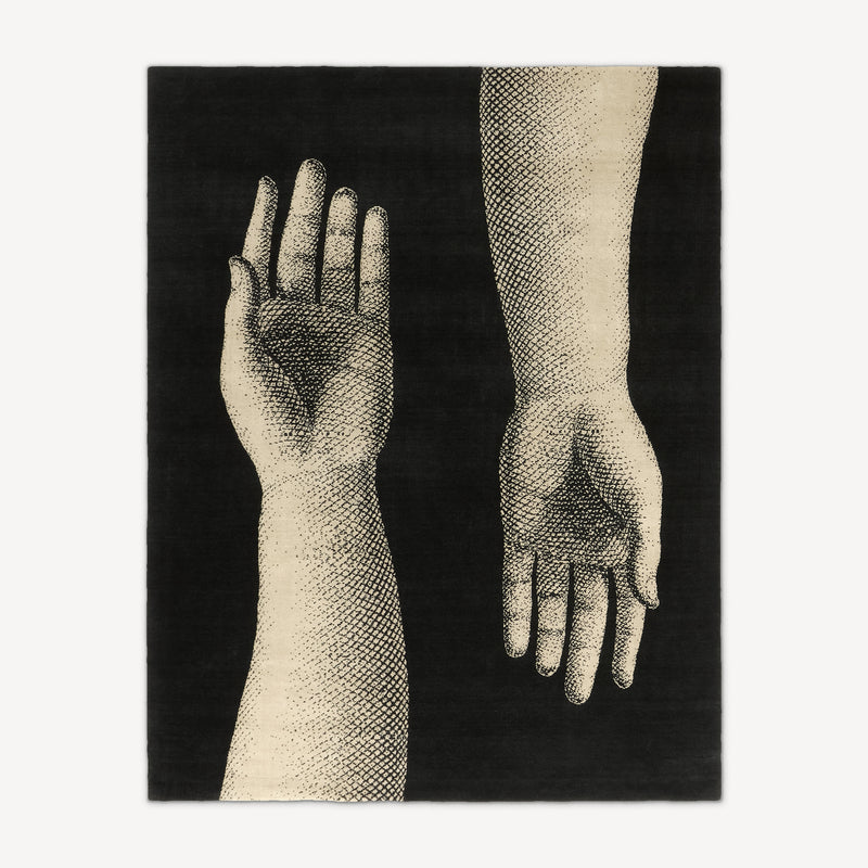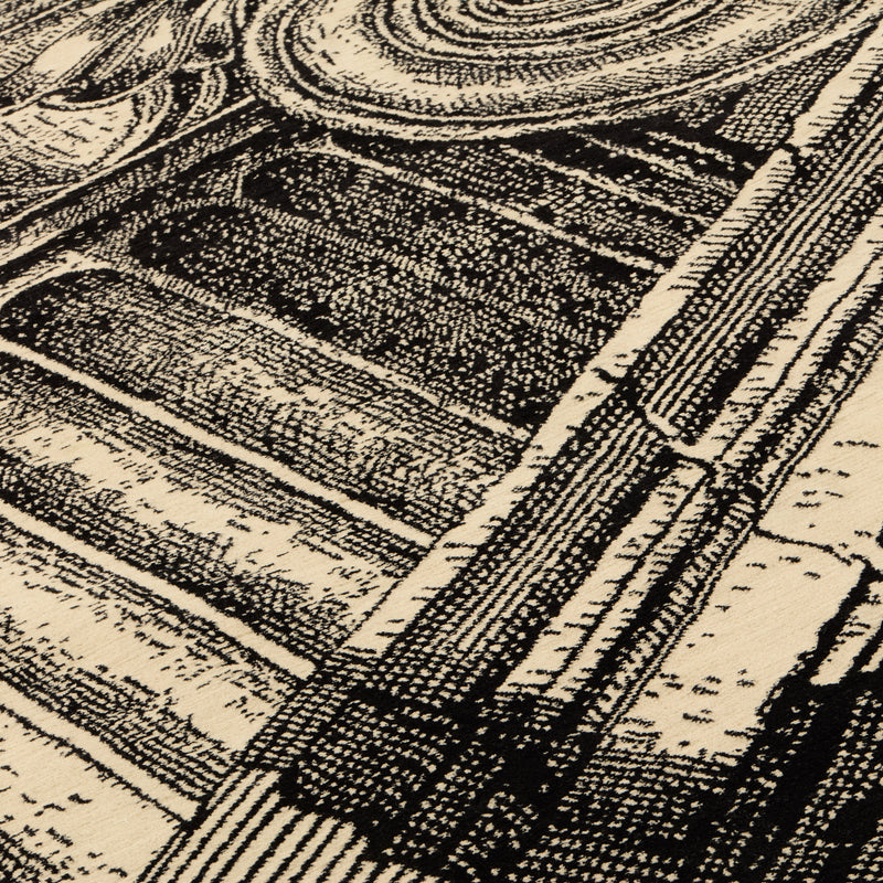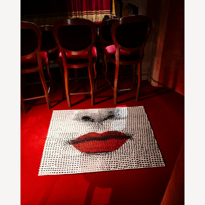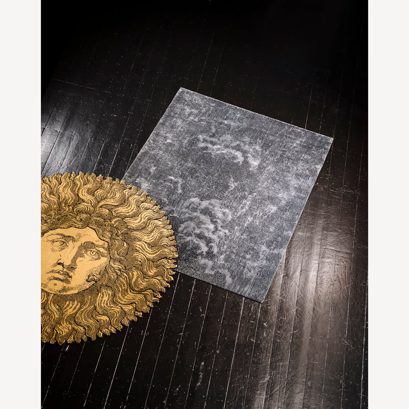 L’imaginaire Fornasetti se traduit dans l’univers matériel de cc-tapis, reconnu pour explorer le tapis comme surface expressive, espace de création et objet design de collection.