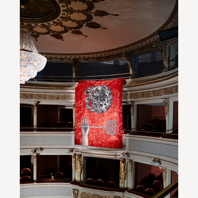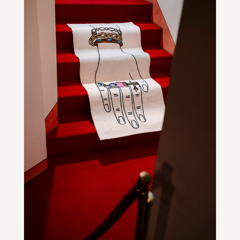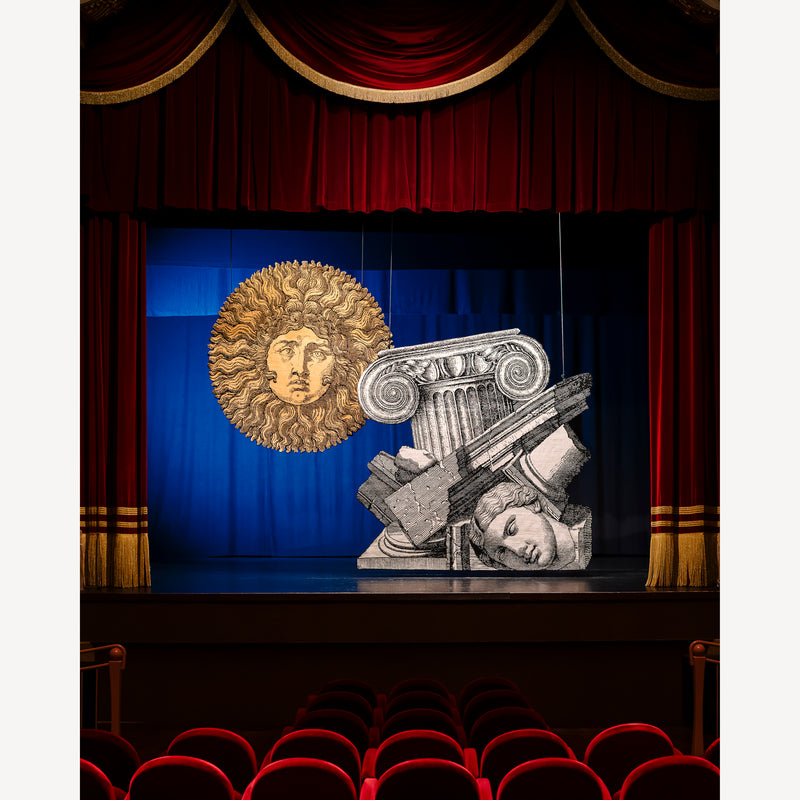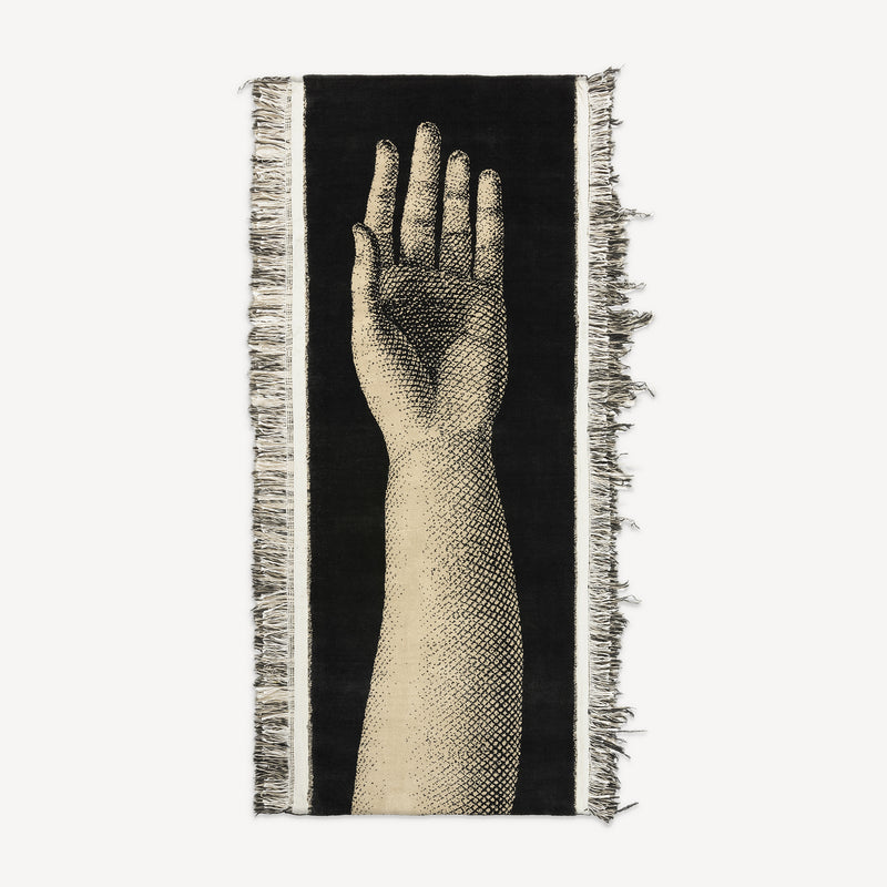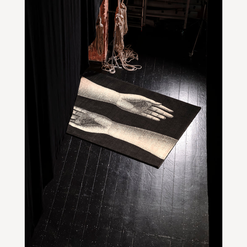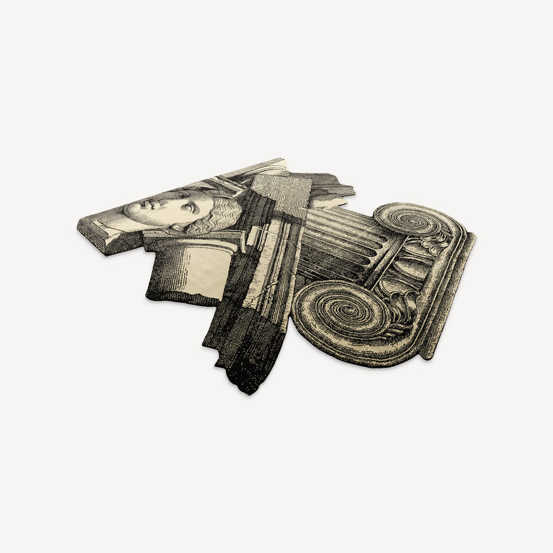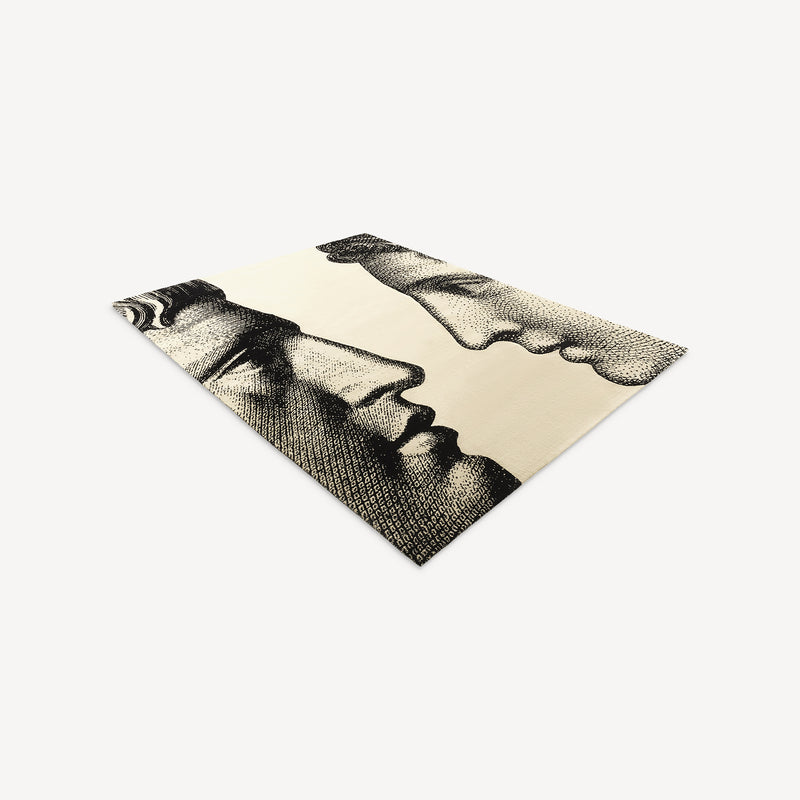 L’imaginaire Fornasetti se traduit dans l’univers matériel de cc-tapis, reconnu pour explorer le tapis comme surface expressive, espace de création et objet design de collection.