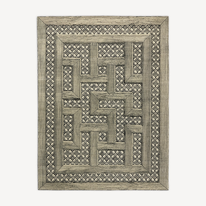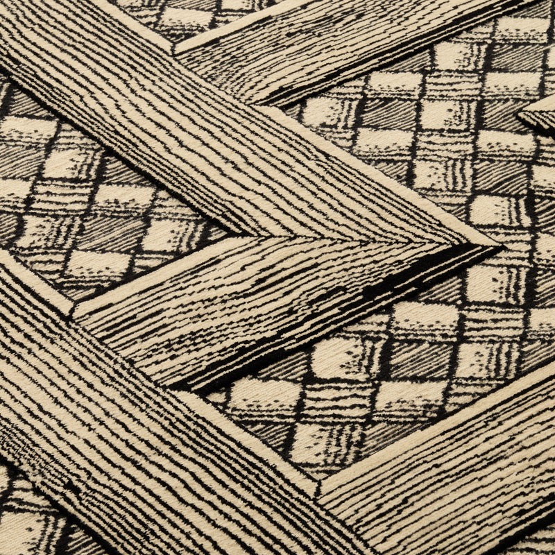 Les tapis sont réalisés à la main à partir de fibres naturelles sélectionnées pour révéler la précision du langage visuel Fornasetti.