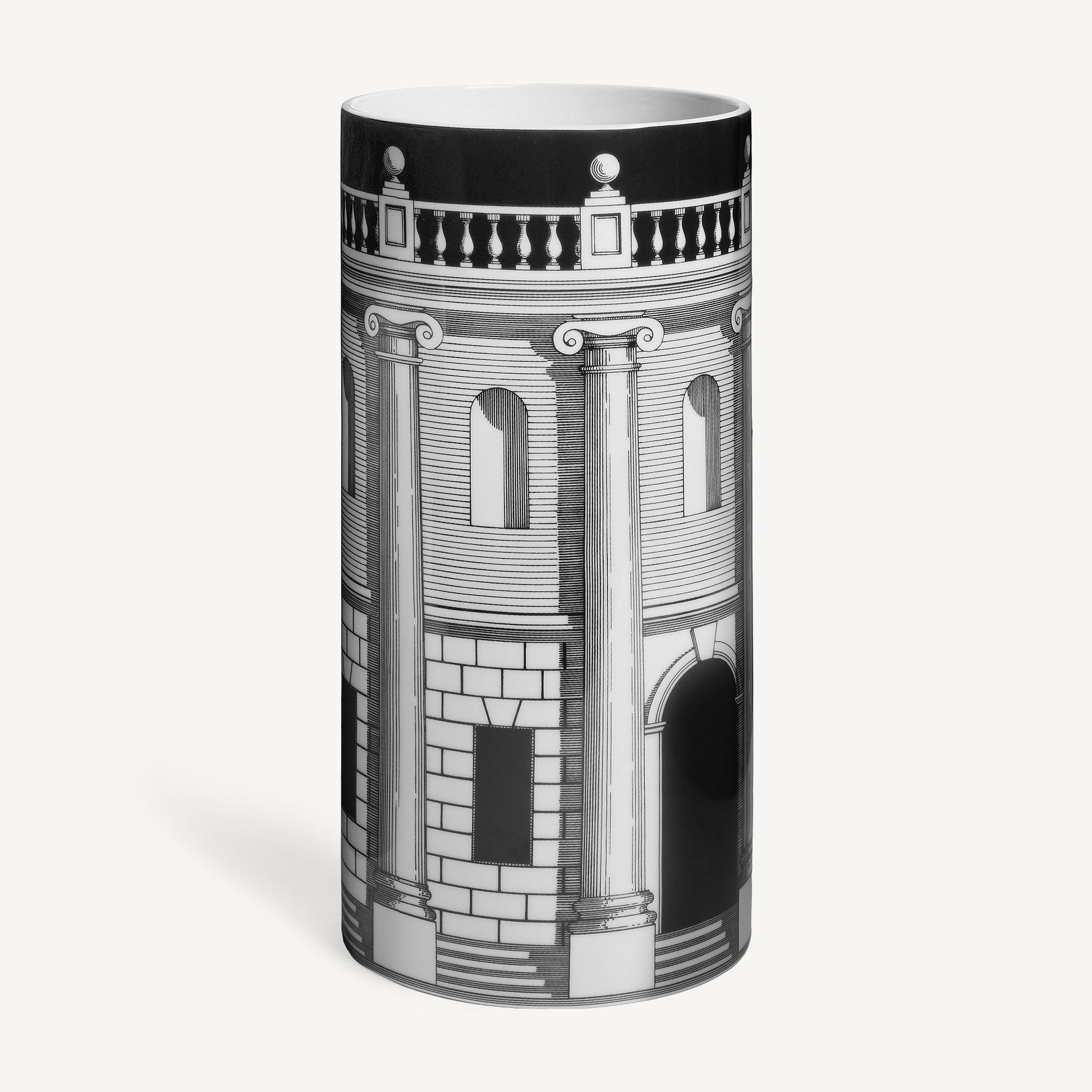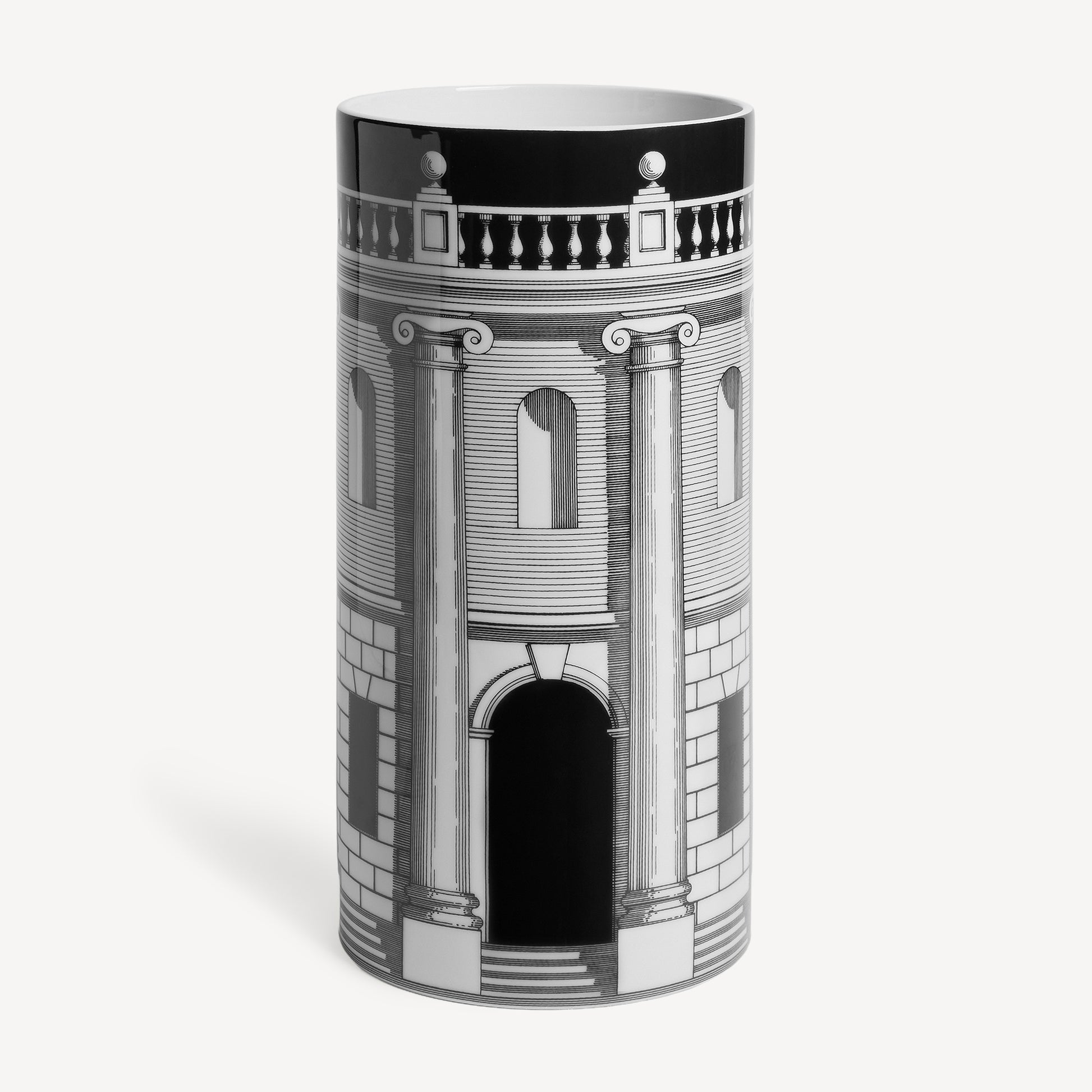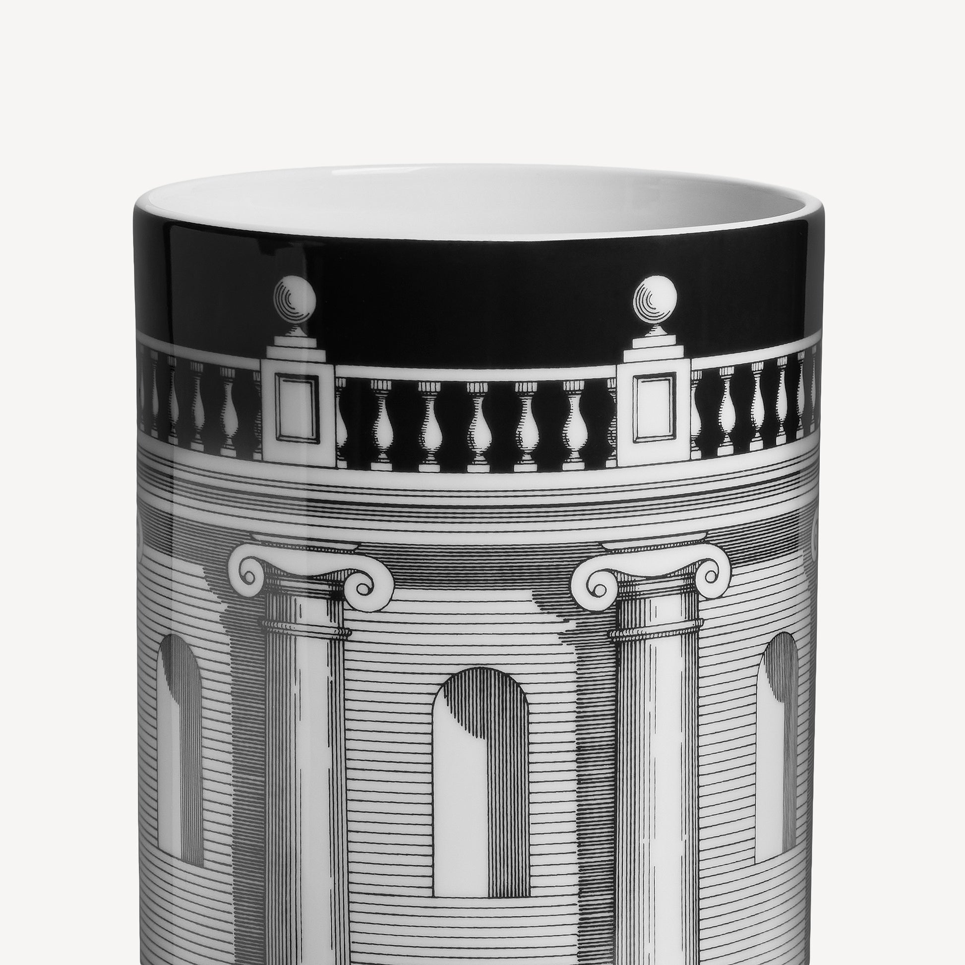 - Une colonnade néoclassique se déploie sur ce vase en porcelaine décoré à la main, traduisant l’architecture classique en un objet décoratif raffiné.