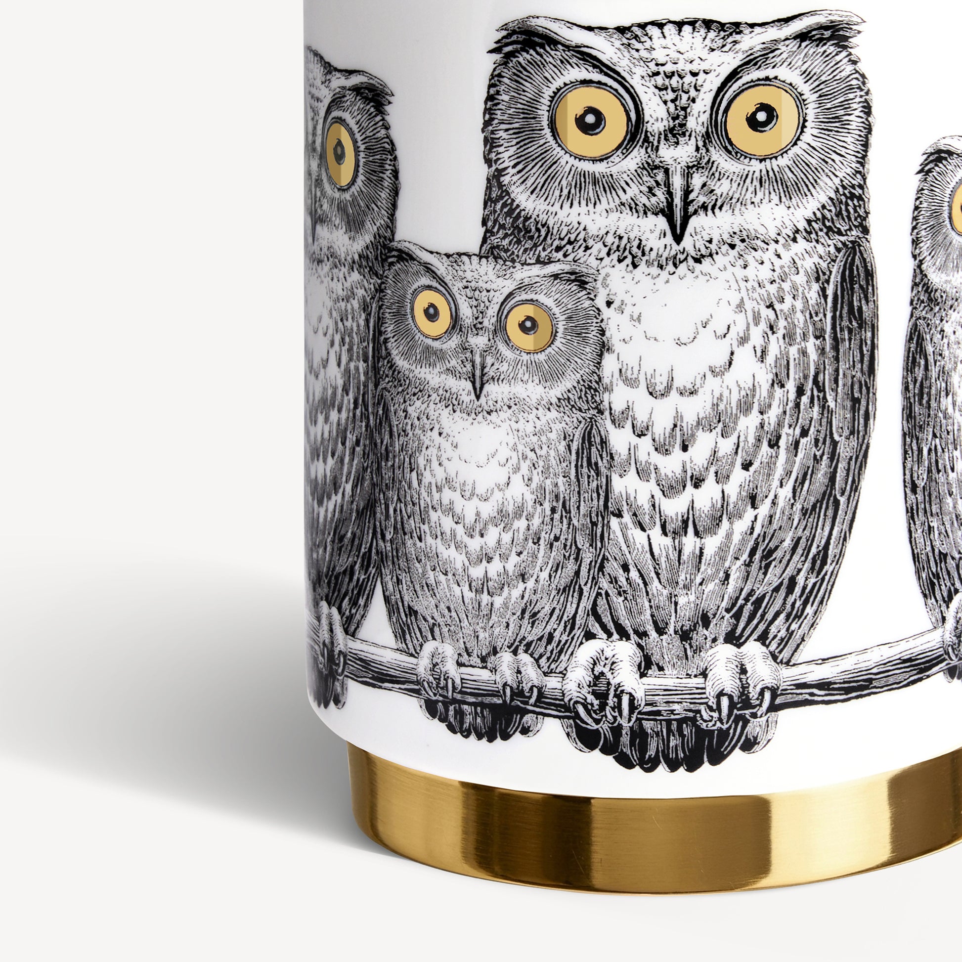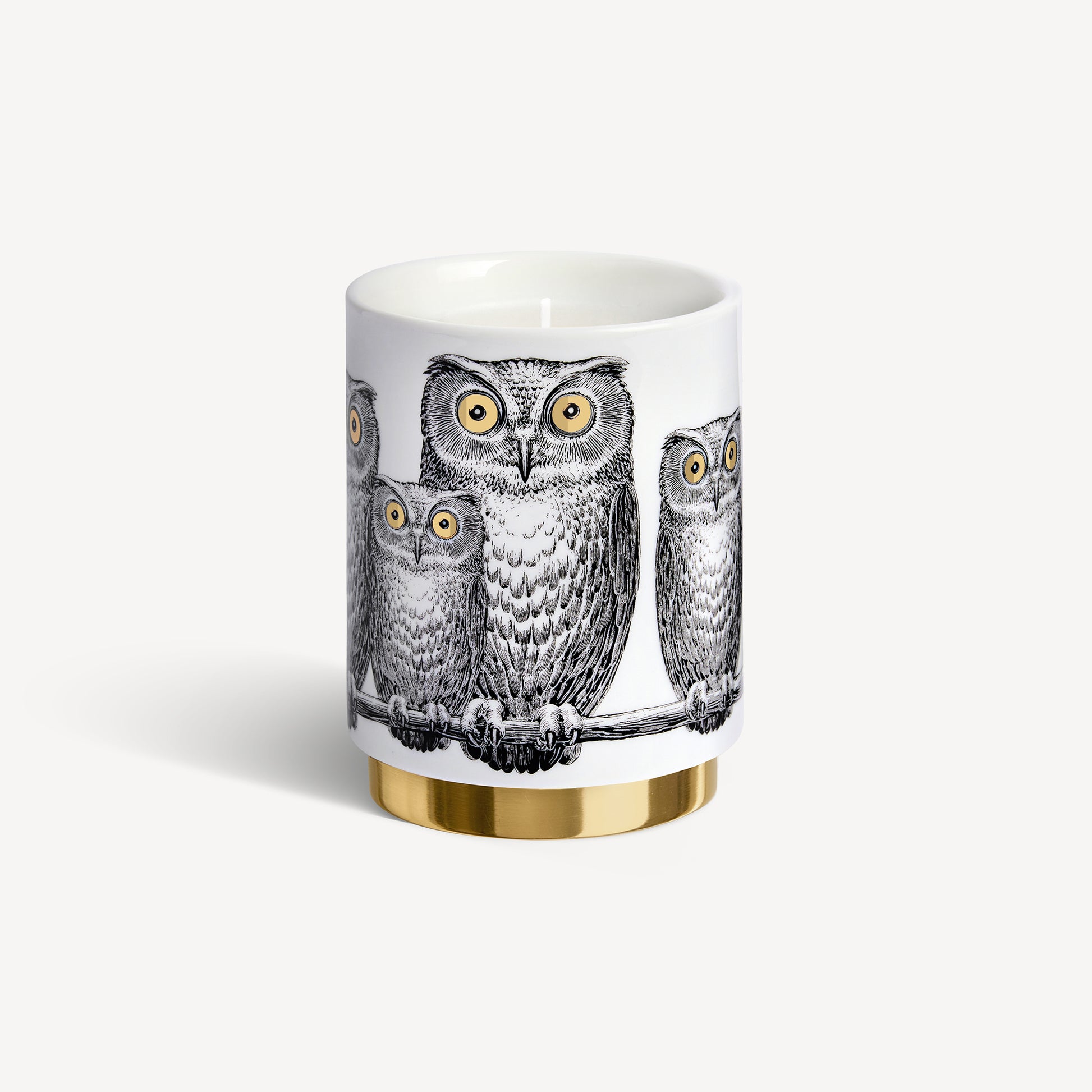 - Des chouettes nocturnes se posent sur cette bougie en porcelaine décorée à la main, donnant vie à une vision à la fois mystérieuse et ludique.