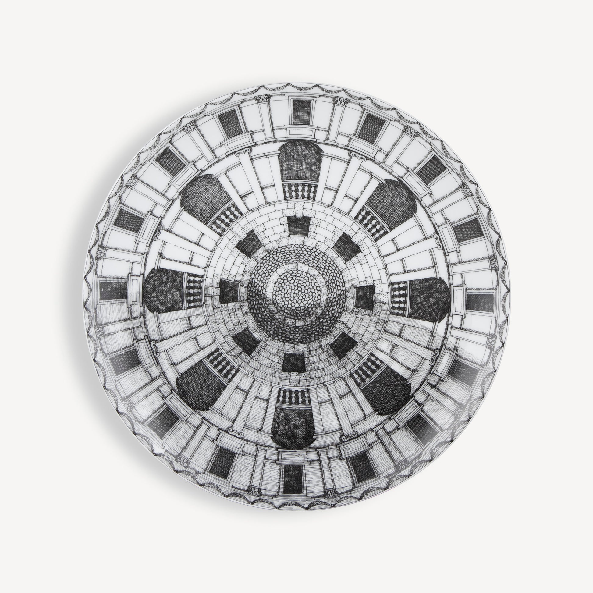 - Orné d’un ensemble d’architectures inventées par Fornasetti, le service de six assiettes décorées à la main Cortili met à l’honneur des palais nobiliaires italiens de différentes époques.