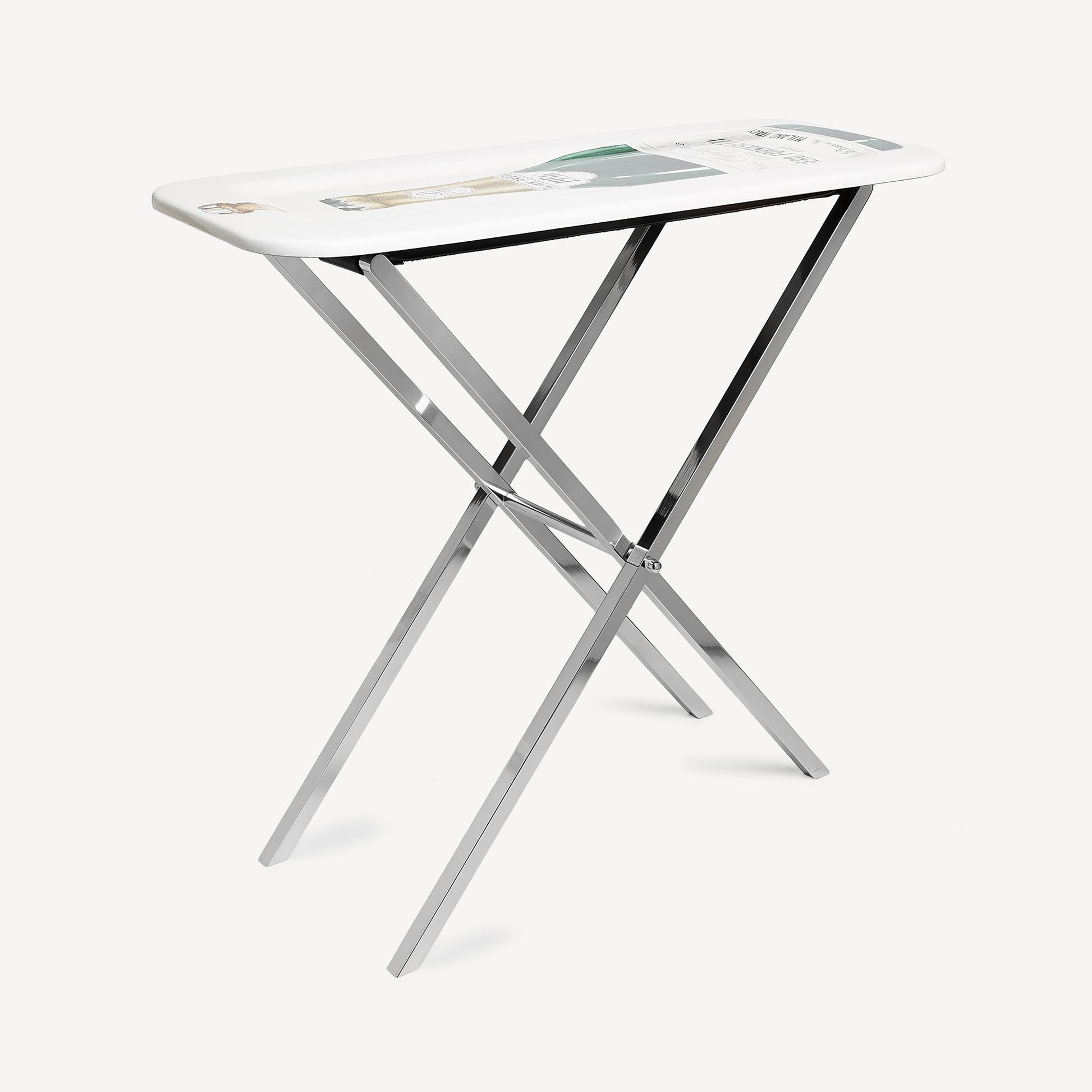 Ce support de plateau pliable est compatible avec les plateaux Fornasetti en bois de 60 cm x 48 cm.