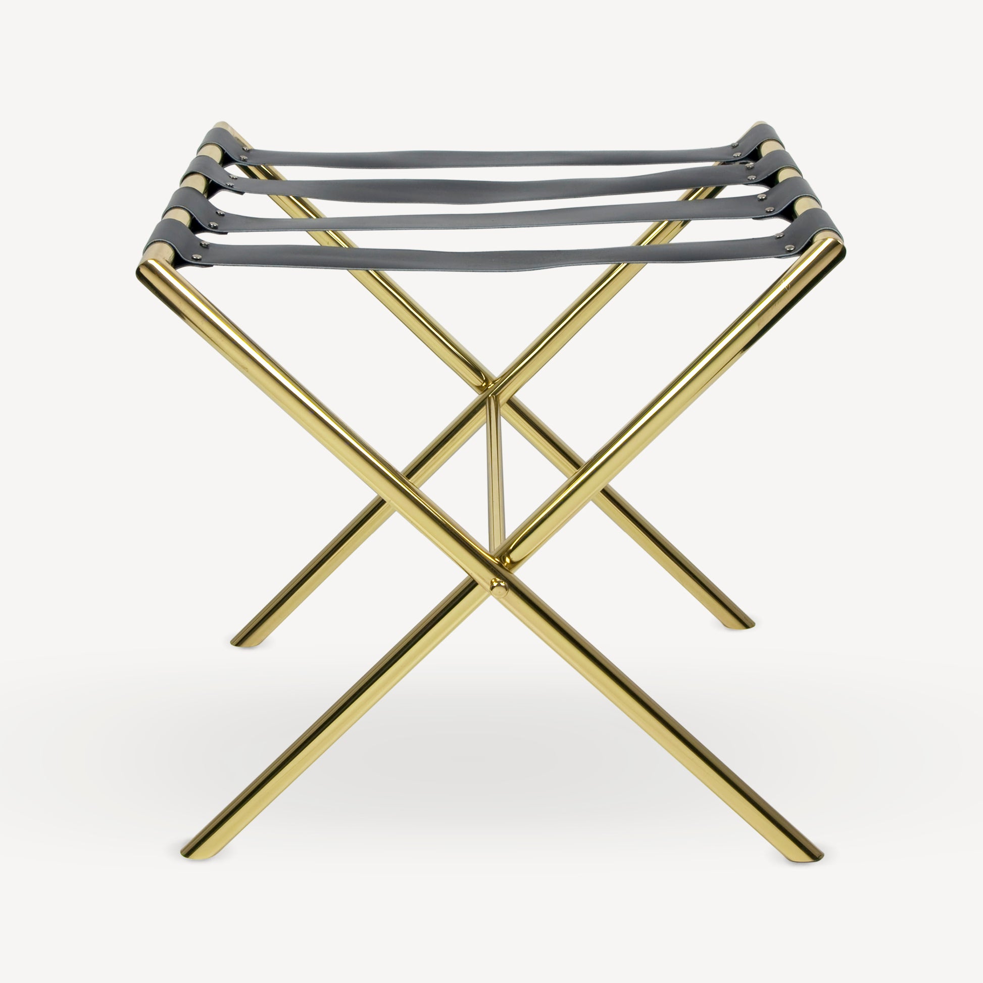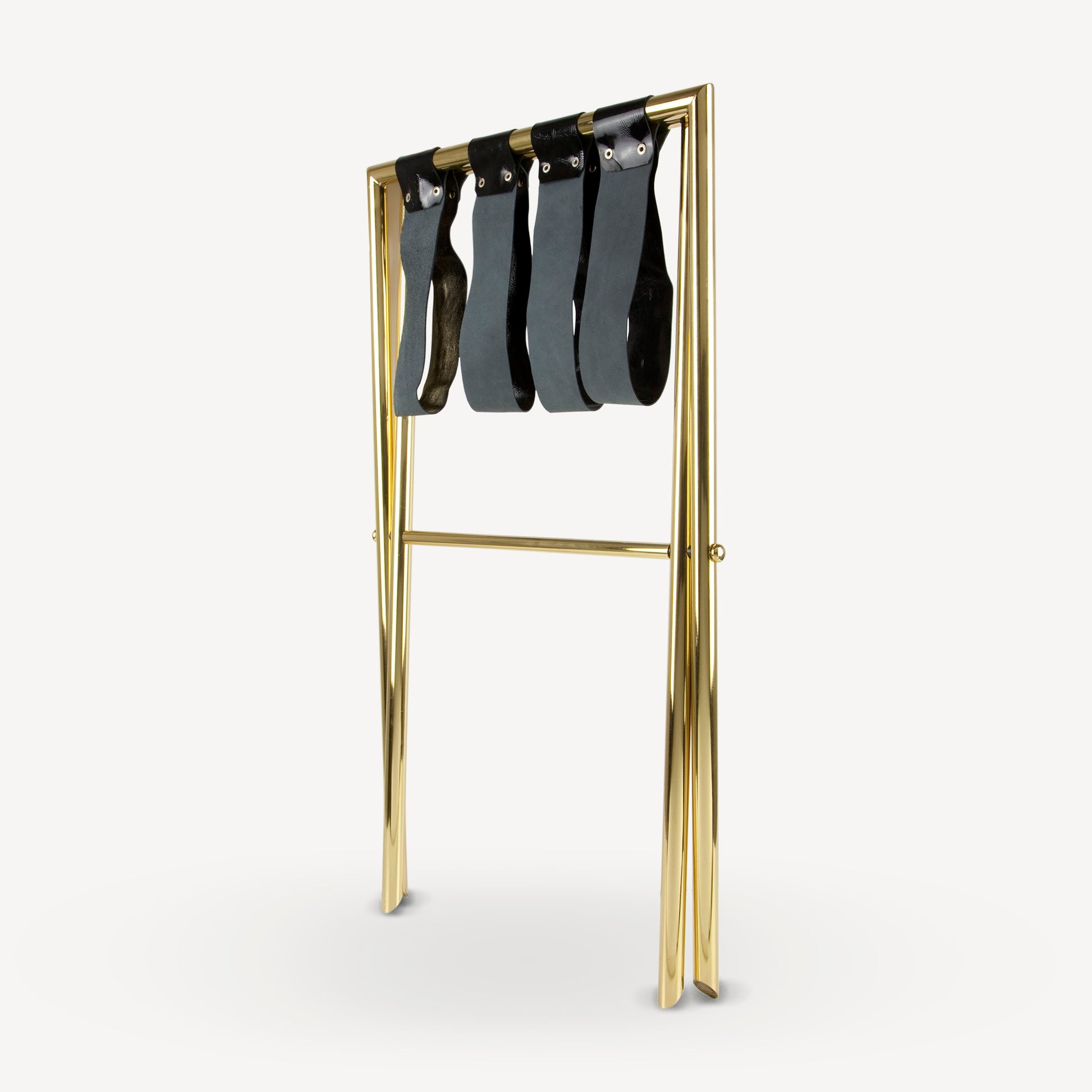 - Ce support pliable en laiton, renforcé par des lanières en cuir, permet de transformer le plateau en table d’appoint. Ce simple objet du quotidien acquiert ainsi une nouvelle fonction d’utilisation et de plaisir.