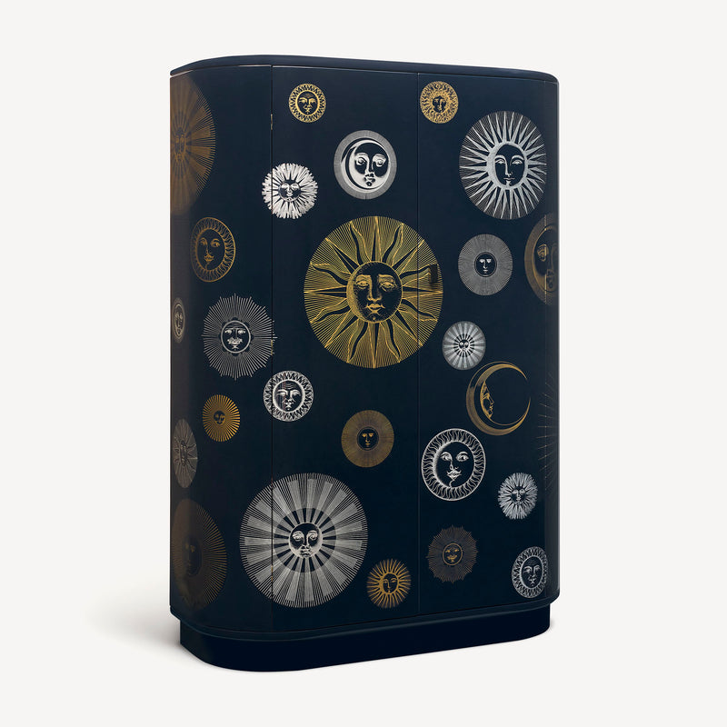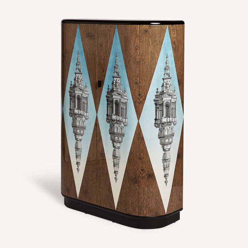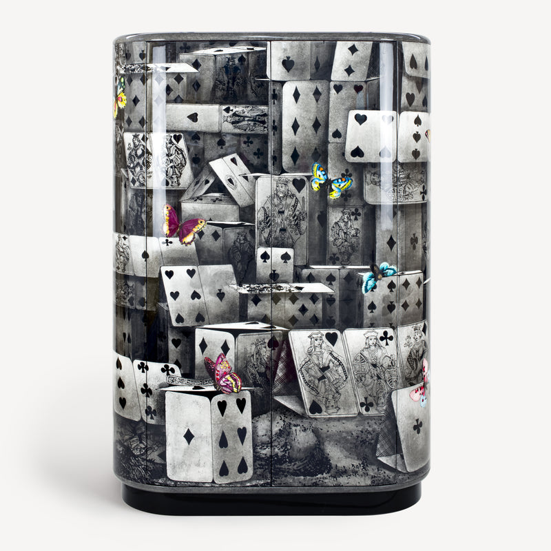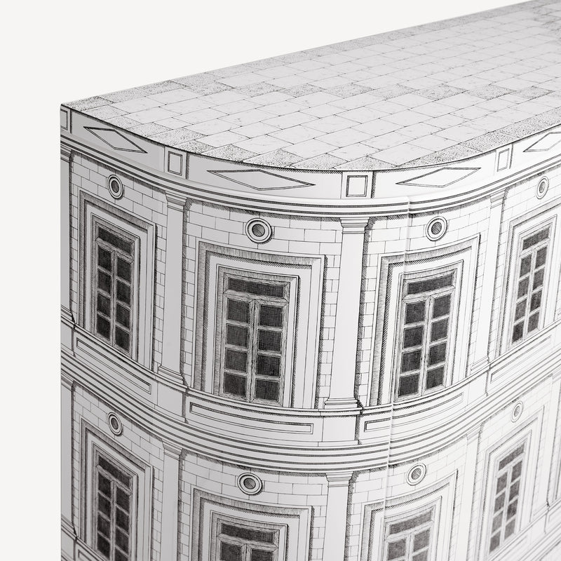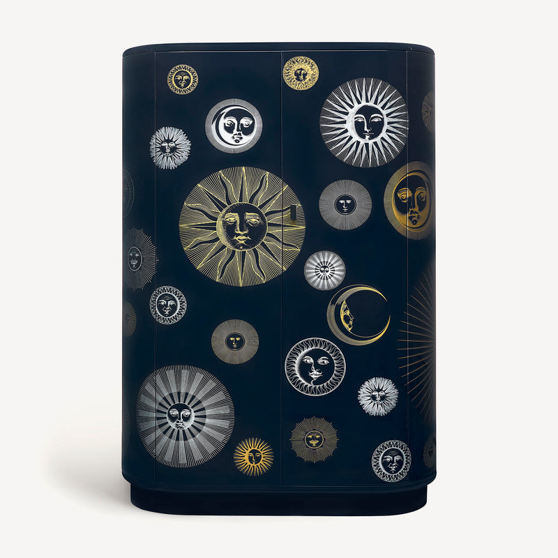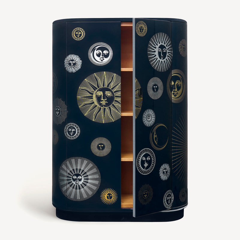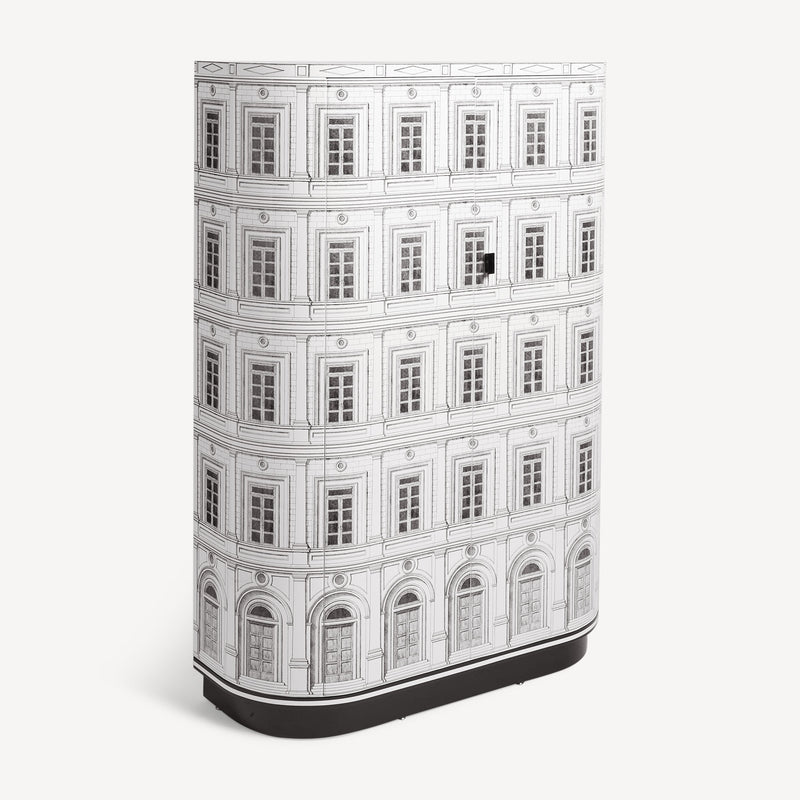 Questo mobile è un omaggio alla tradizione dei decori zoomorfi. La zebra spunta da un cespuglio di foglie e fa capolino nel regno domestico. Il mondo onirico di Fornasetti fa del salotto il suo habitat ideale.