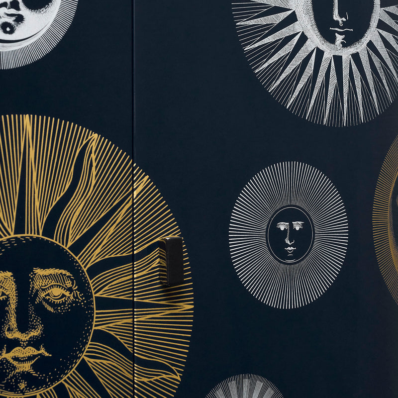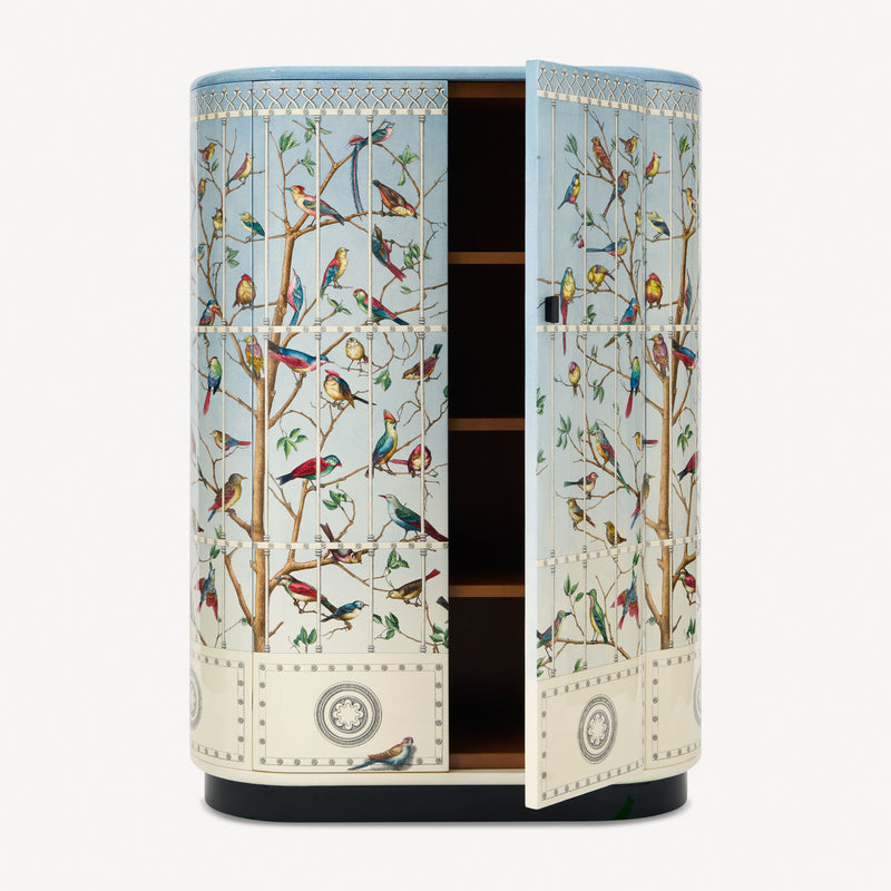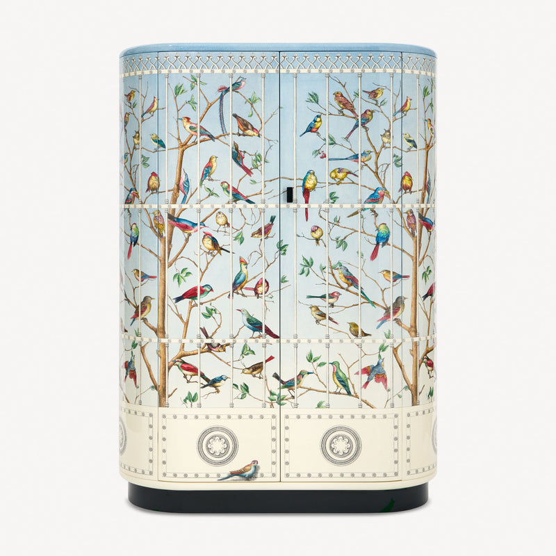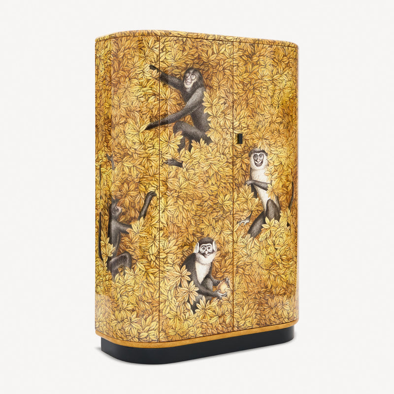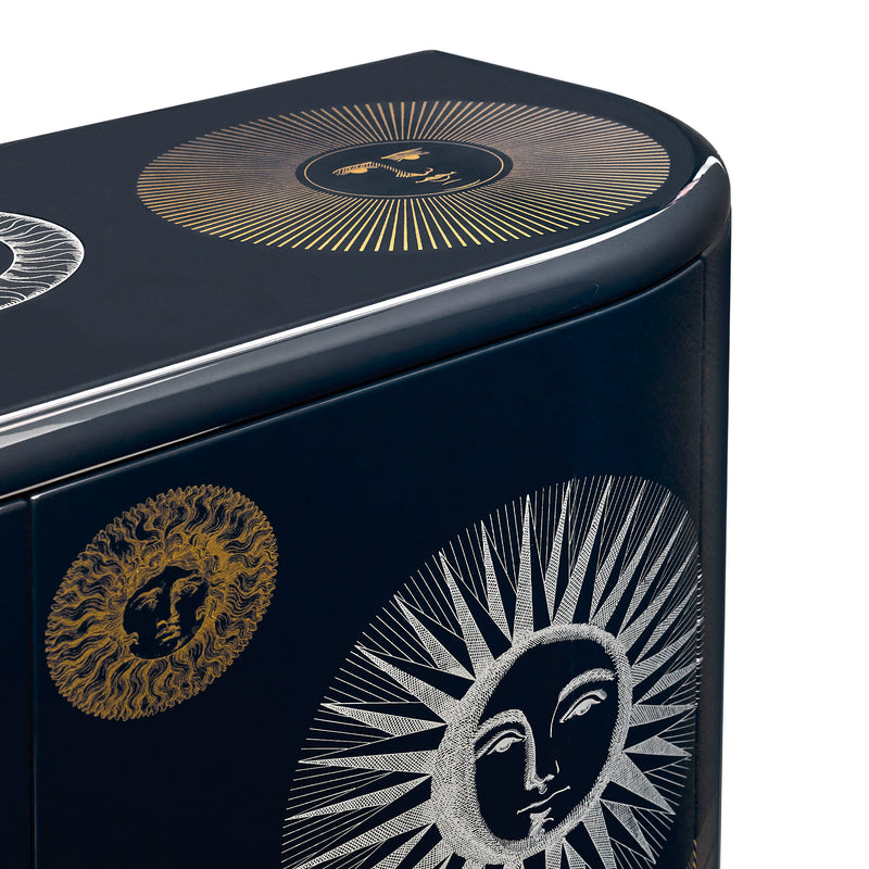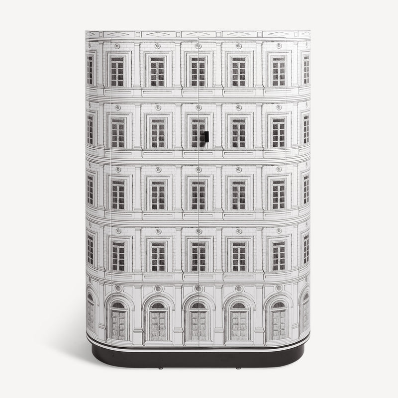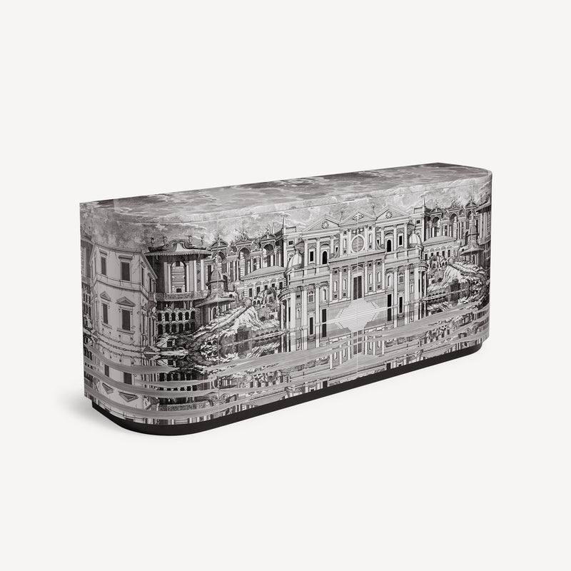 Questo mobile è un omaggio alla tradizione dei decori zoomorfi. La zebra spunta da un cespuglio di foglie e fa capolino nel regno domestico. Il mondo onirico di Fornasetti fa del salotto il suo habitat ideale.