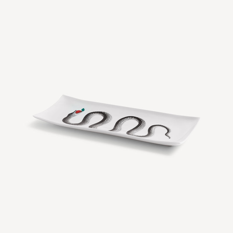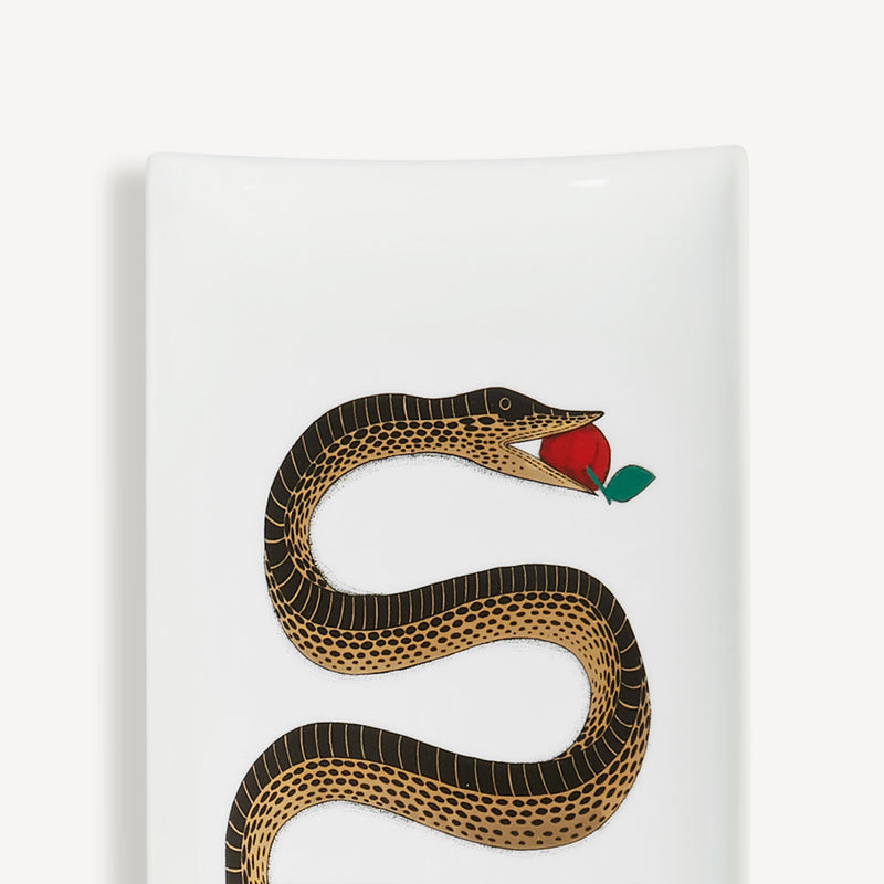 Alla serie Peccato Originale si aggiungono i vassoi Serpente, dove la tecnica della spugnatura a mano dello sfondo conferma la tradizione di alto artigianato.