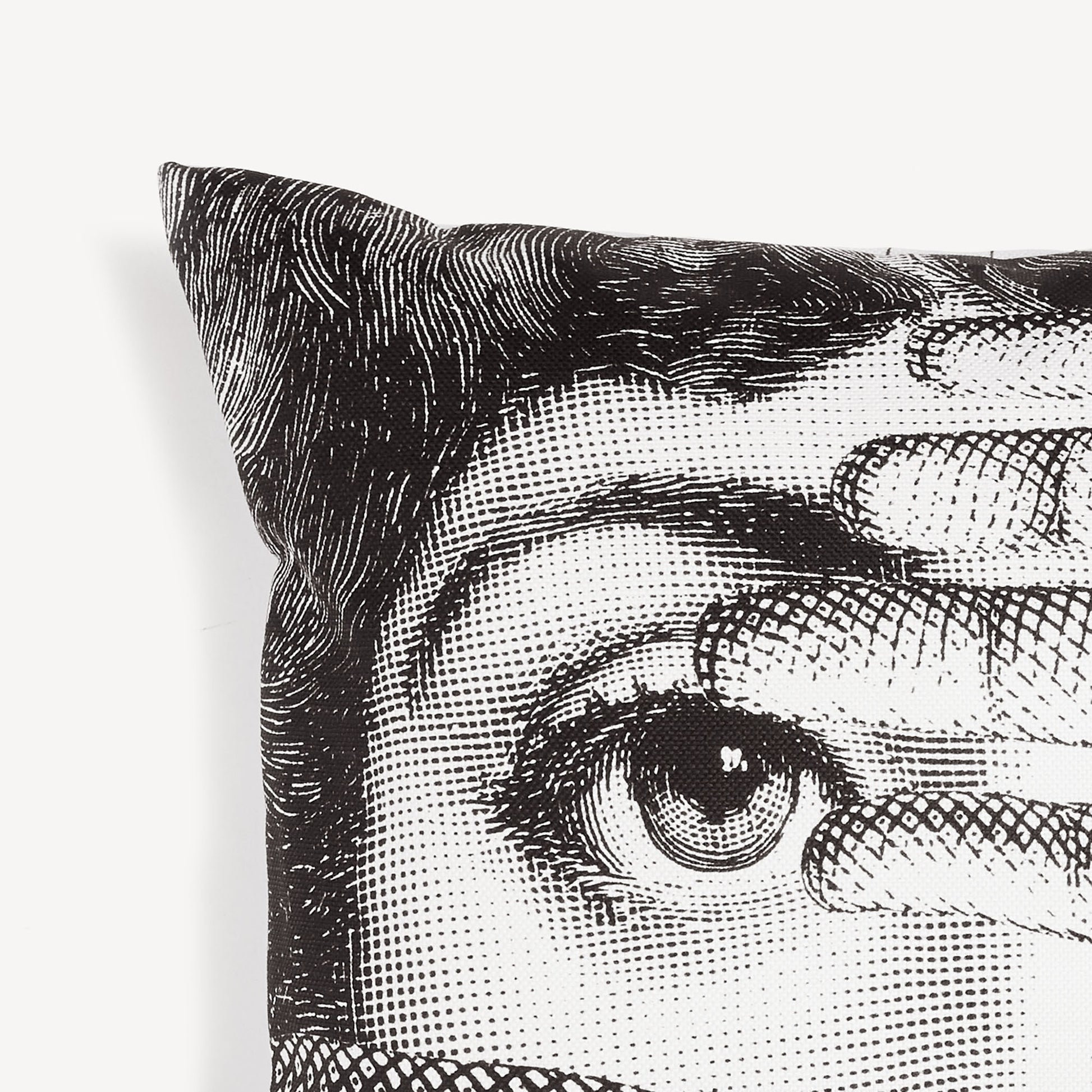 - Il volto della cantante lirica Lina Cavalieri, reinterpretato da Piero Fornasetti, impreziosisce questo cuscino sfoderabile con imbottitura inclusa, appartenente all'iconica serie Tema e Variazioni: un vero pezzo da collezione.
