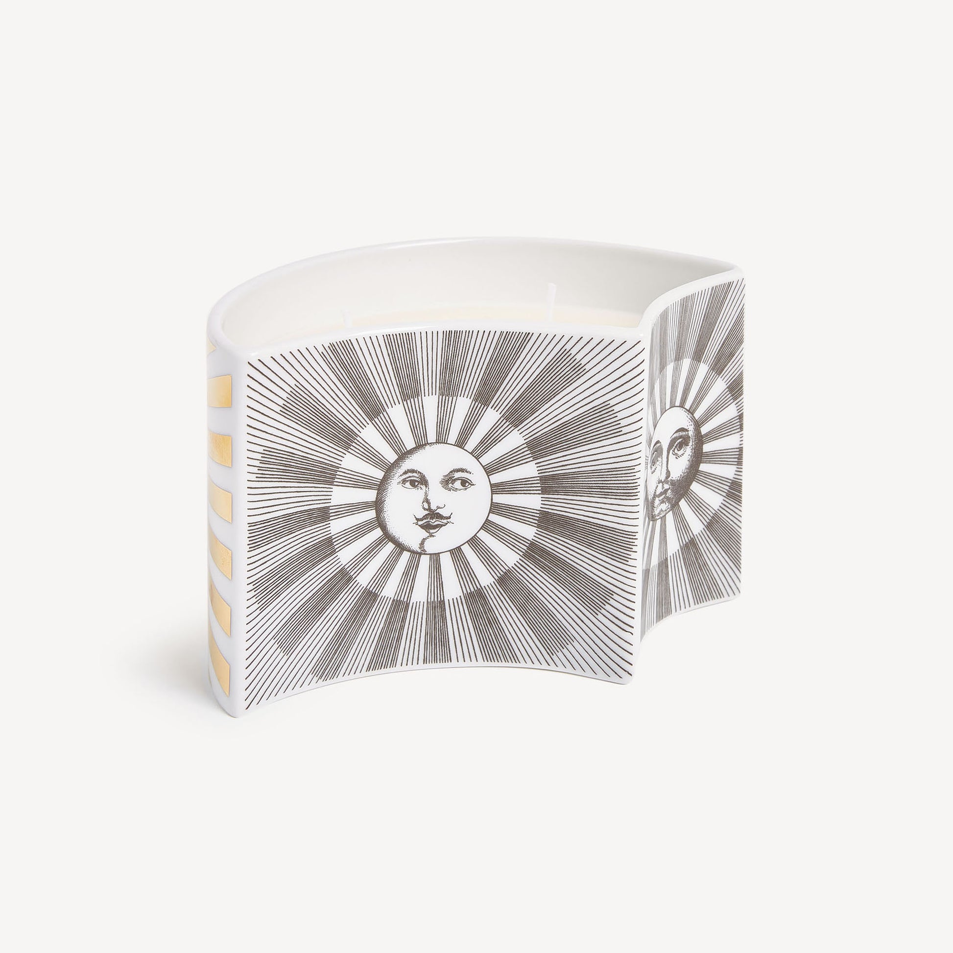 - Il tratto essenziale e raffinato di Fornasetti trasforma le candele dall'iconico decoro Soli in oggetti inconfondibili e intramontabili.