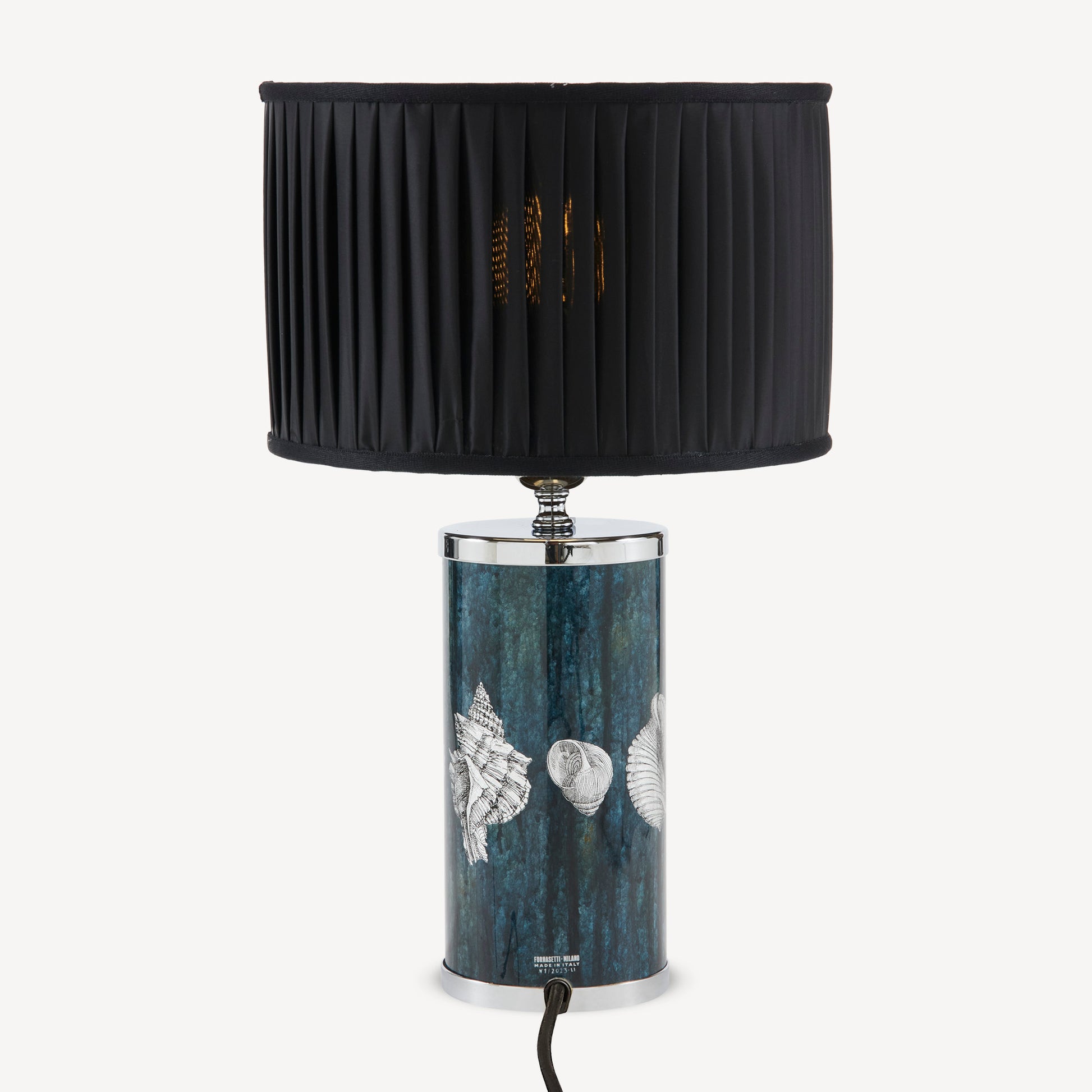 - Questo paralume cilindrico in tessuto plissè con struttura in metallo è il complemento ideale per dare vita alle lampade da comodino e da tavola Fornasetti: un vero oggetto d'arte che trasforma i gesti quotidiani in momenti artistici.