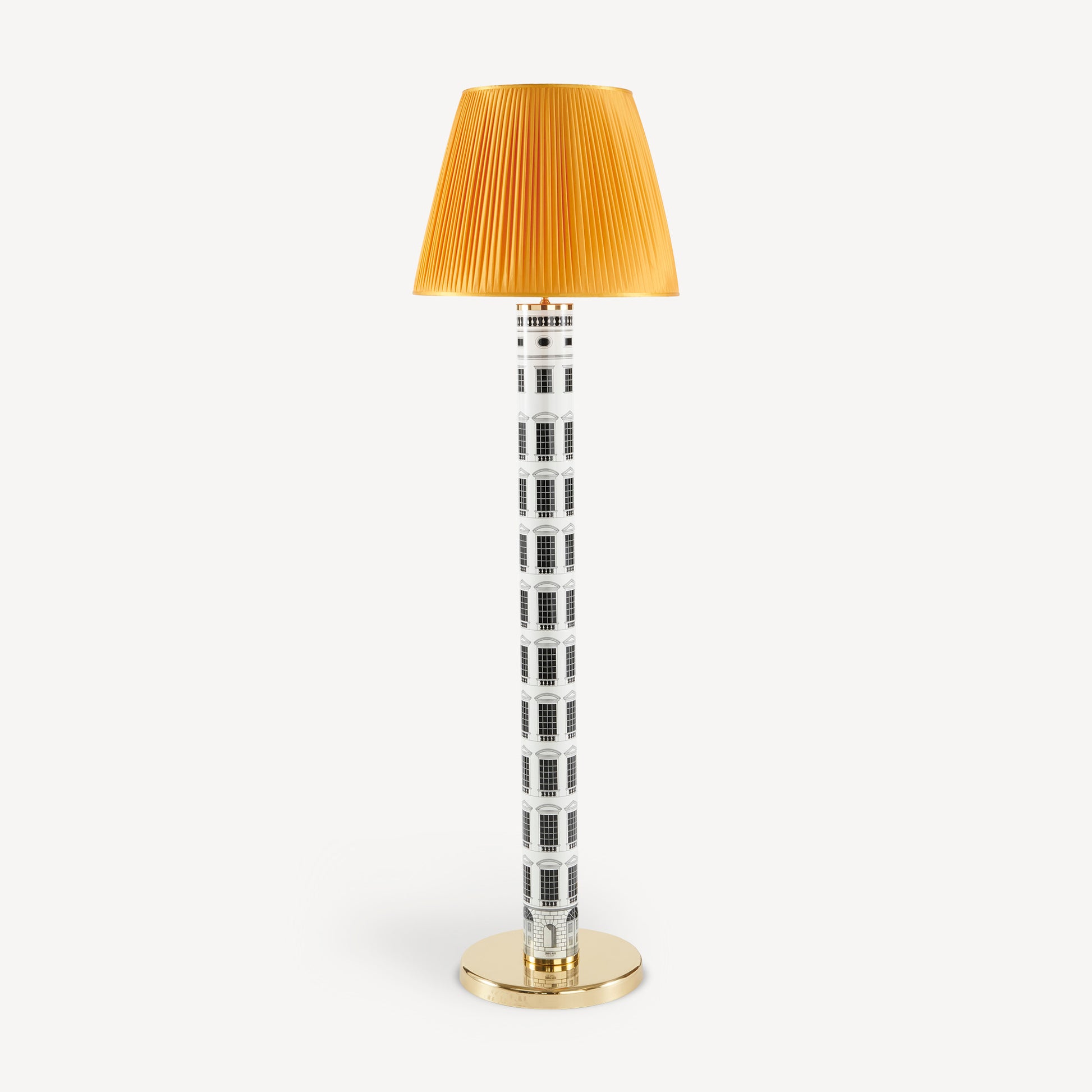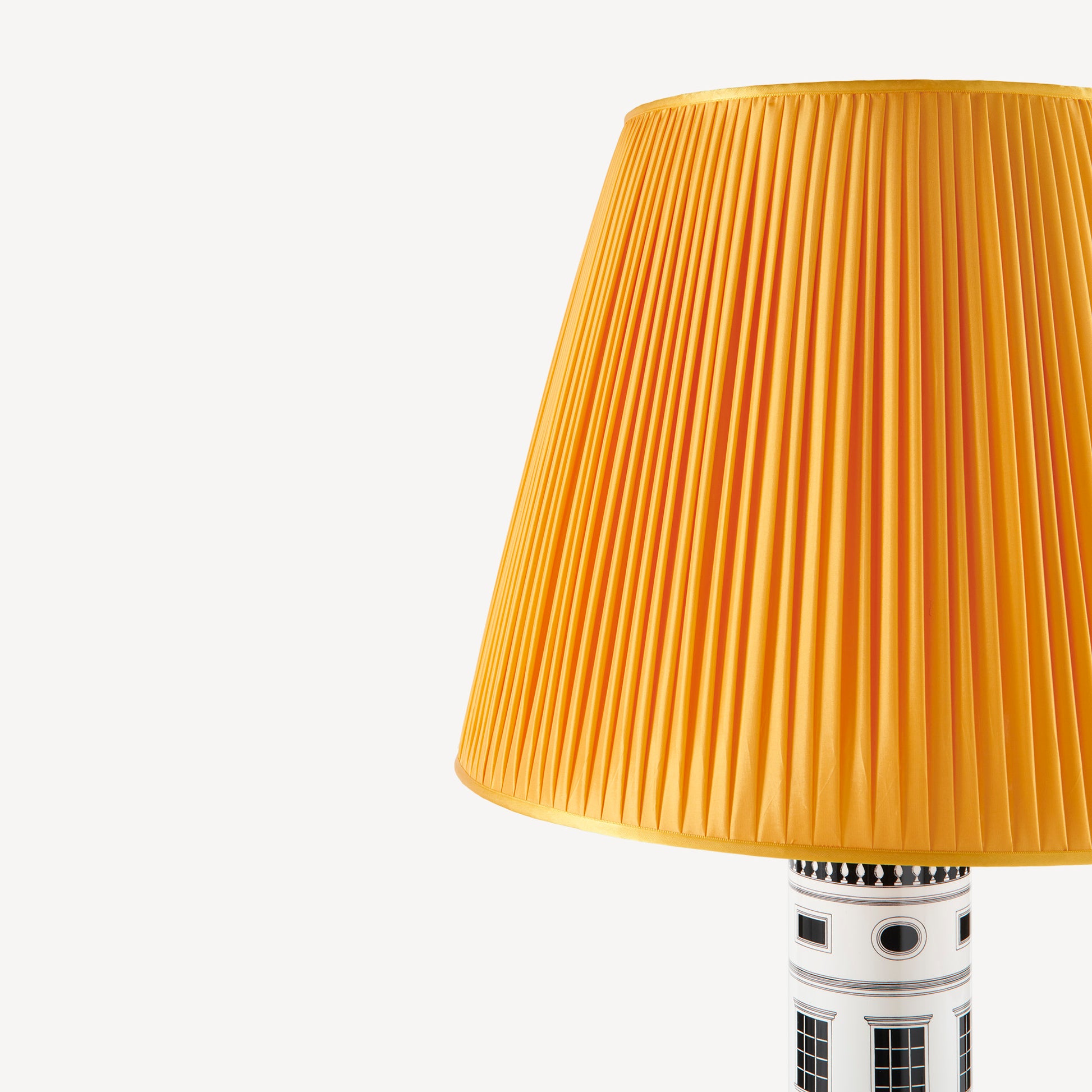 - Questo paralume conico in tessuto plissè con struttura in metallo è il complemento ideale per dare vita alla lampada da terra Fornasetti: un vero oggetto d'arte che trasforma i gesti quotidiani in momenti artistici.