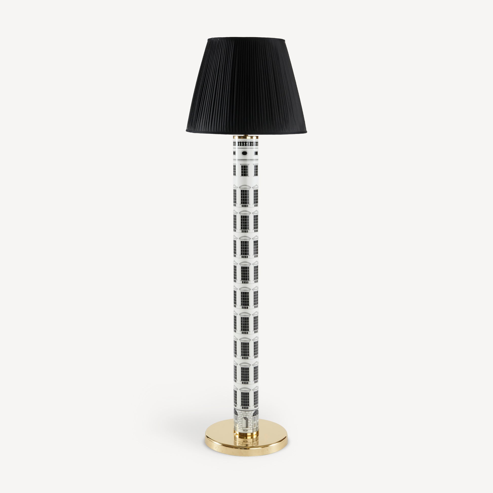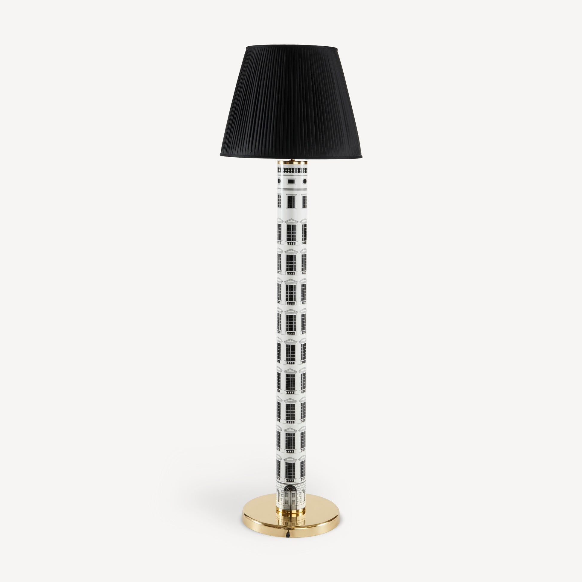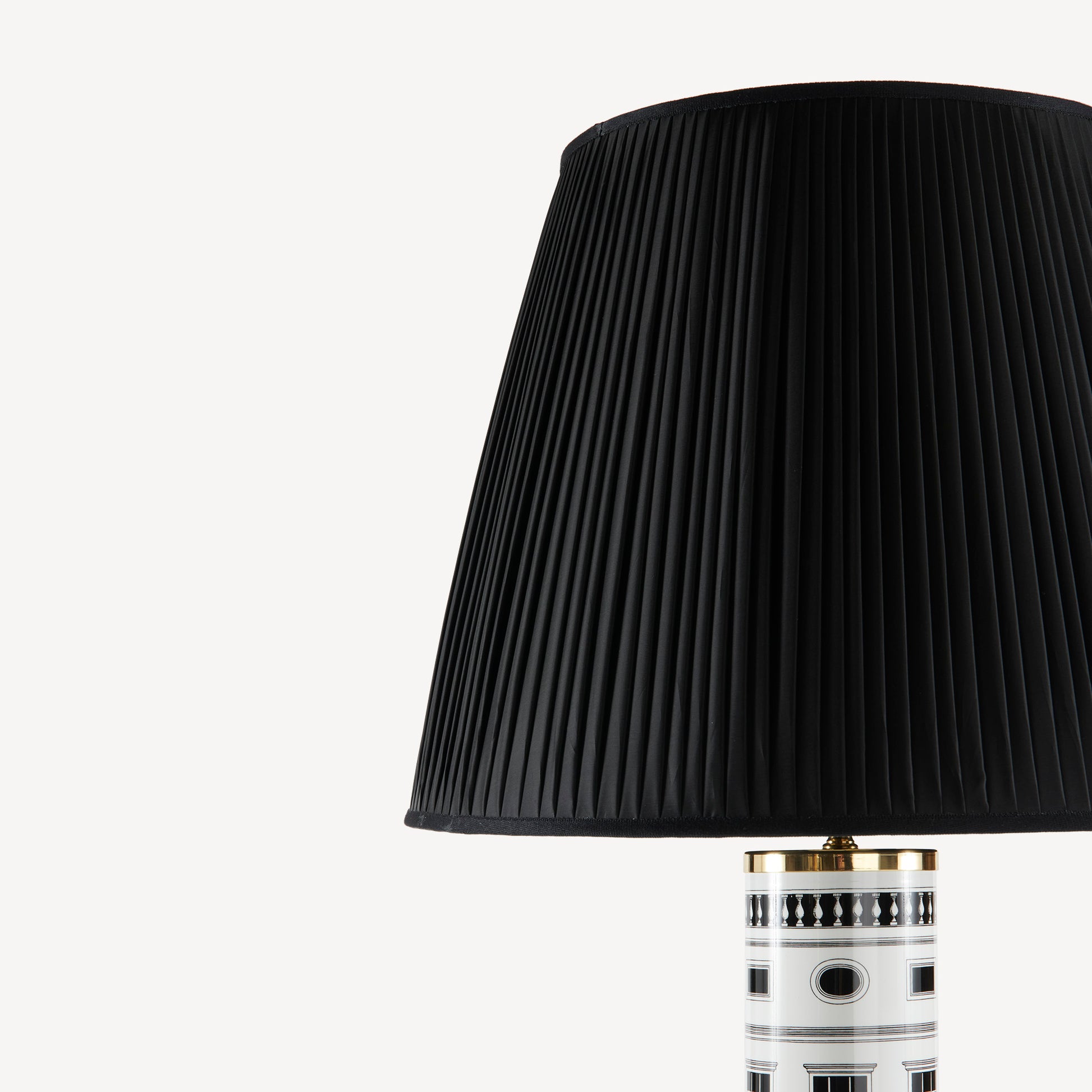 - Questo paralume conico in tessuto plissè con struttura in metallo è il complemento ideale per dare vita alla lampada da terra Fornasetti: un vero oggetto d'arte che trasforma i gesti quotidiani in momenti artistici.