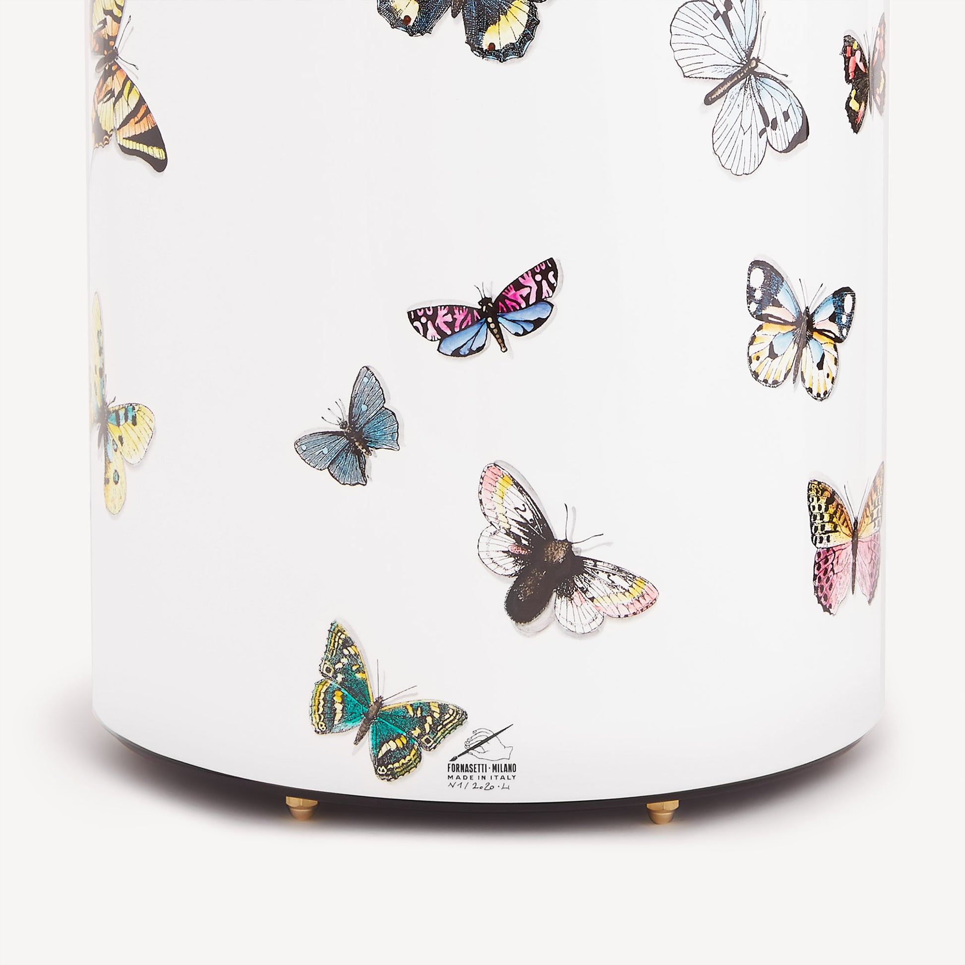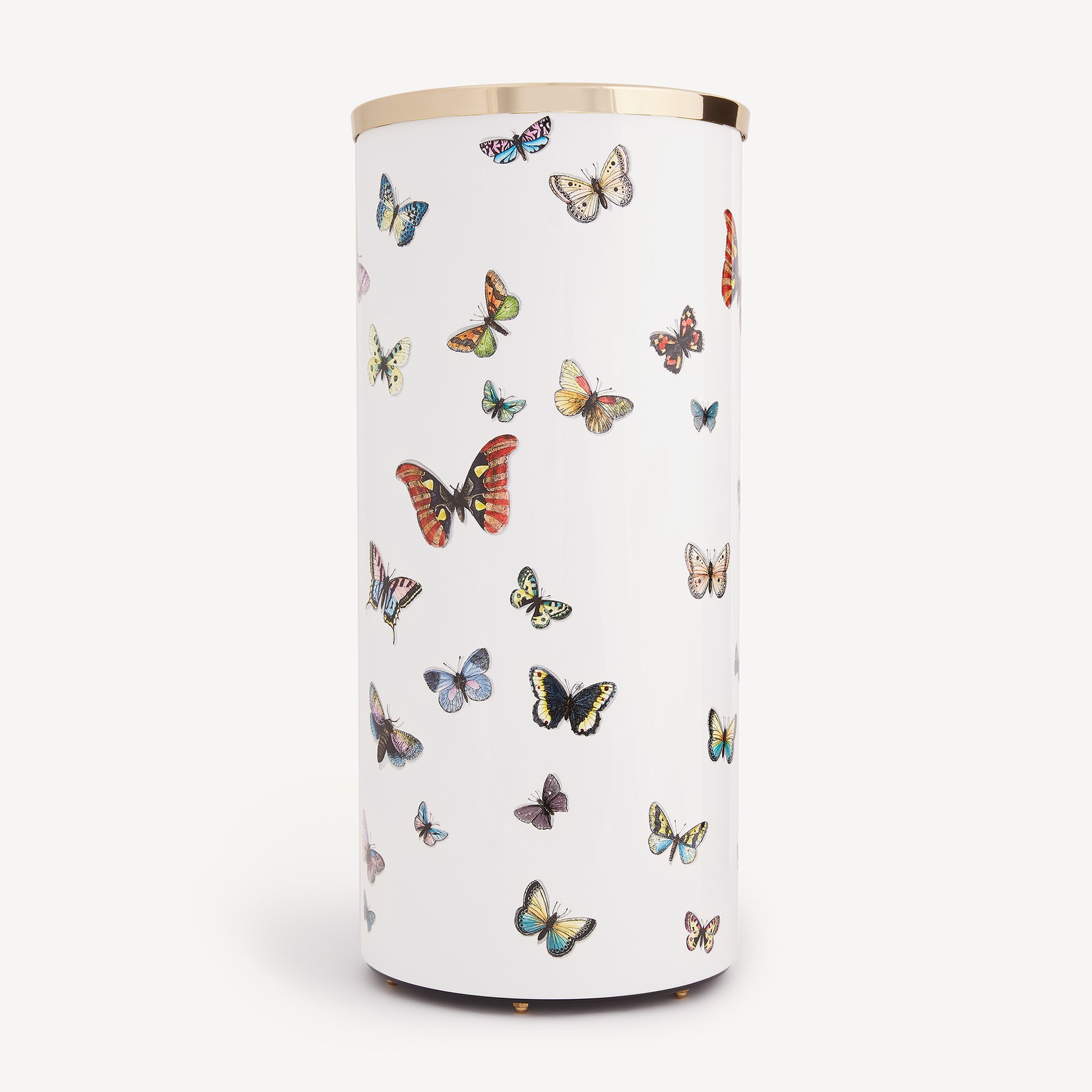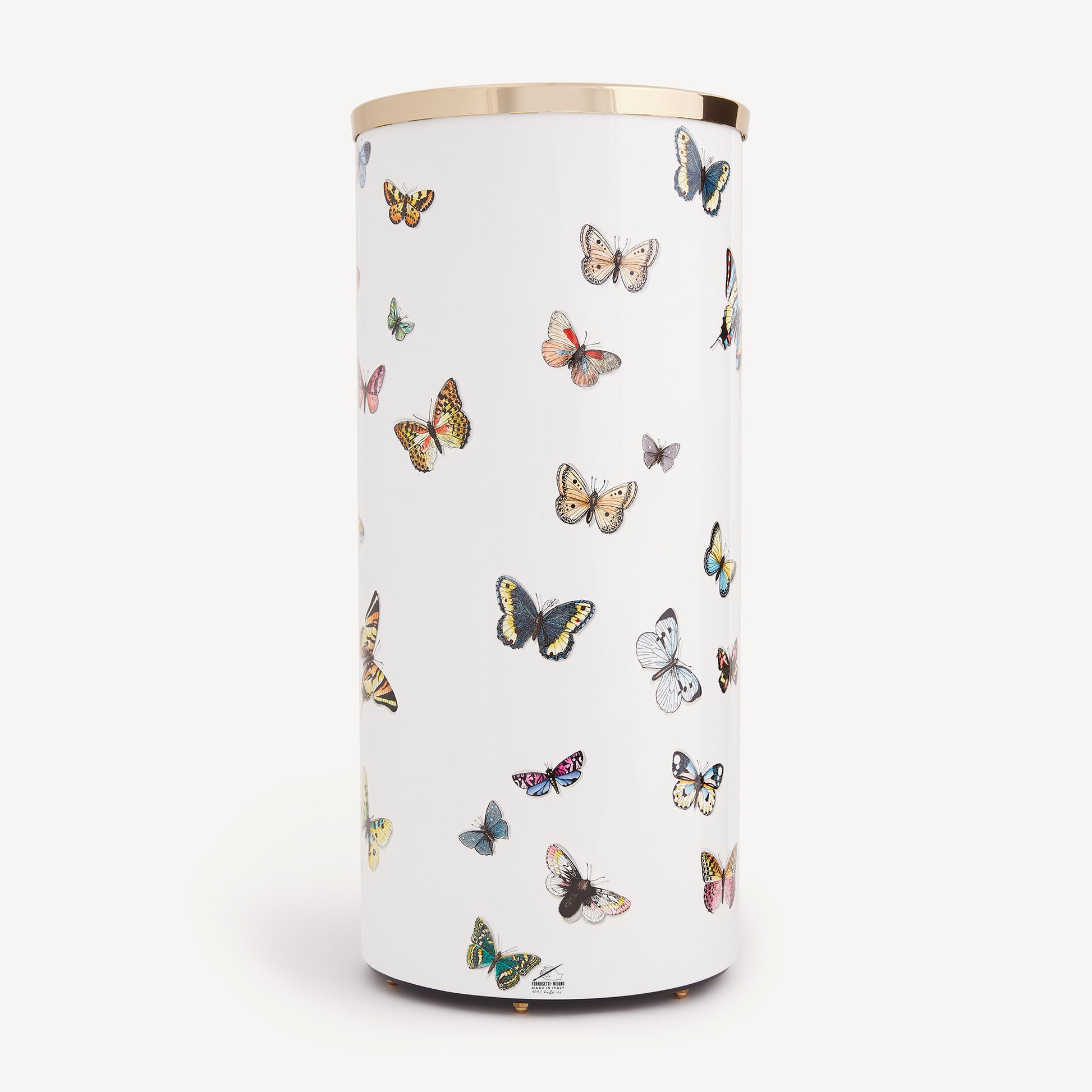 - La leggiadria delle farfalle in volo, protagoniste del decoro, conferisce un fascino sempre attuale e sorprendente a questo portaombrelli realizzato in metallo serigrafato, dipinto e laccato a mano, con bordo superiore in ottone e dotato di piedini. Per la pulizia si raccomanda l'utilizzo di un panno umido senza detergente.