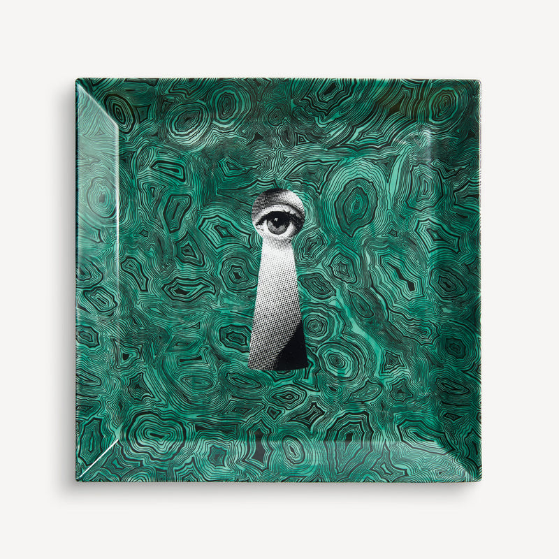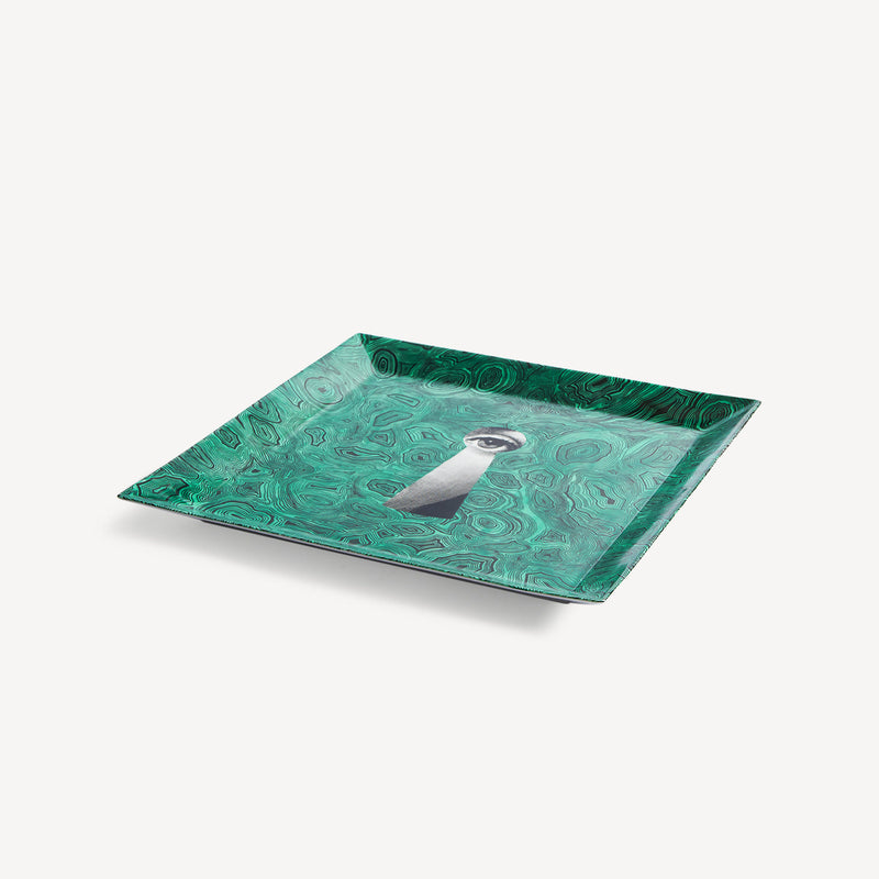 Vassoio quadrato Serratura su Malachite