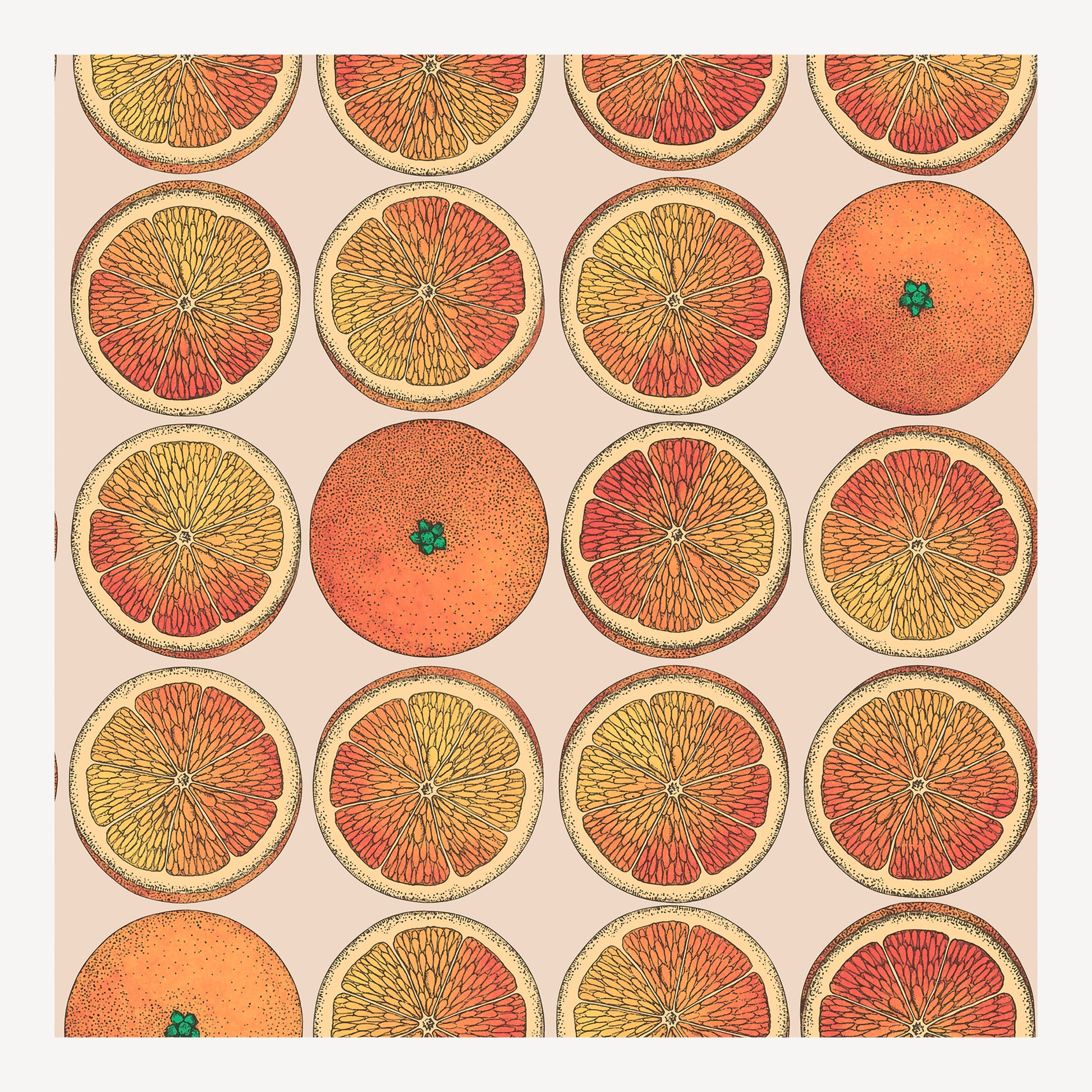 - La carta da parati geometrica Arance gioca senza compromessi con la ripetizione del disegno dei profumati agrumi del Mediterraneo.