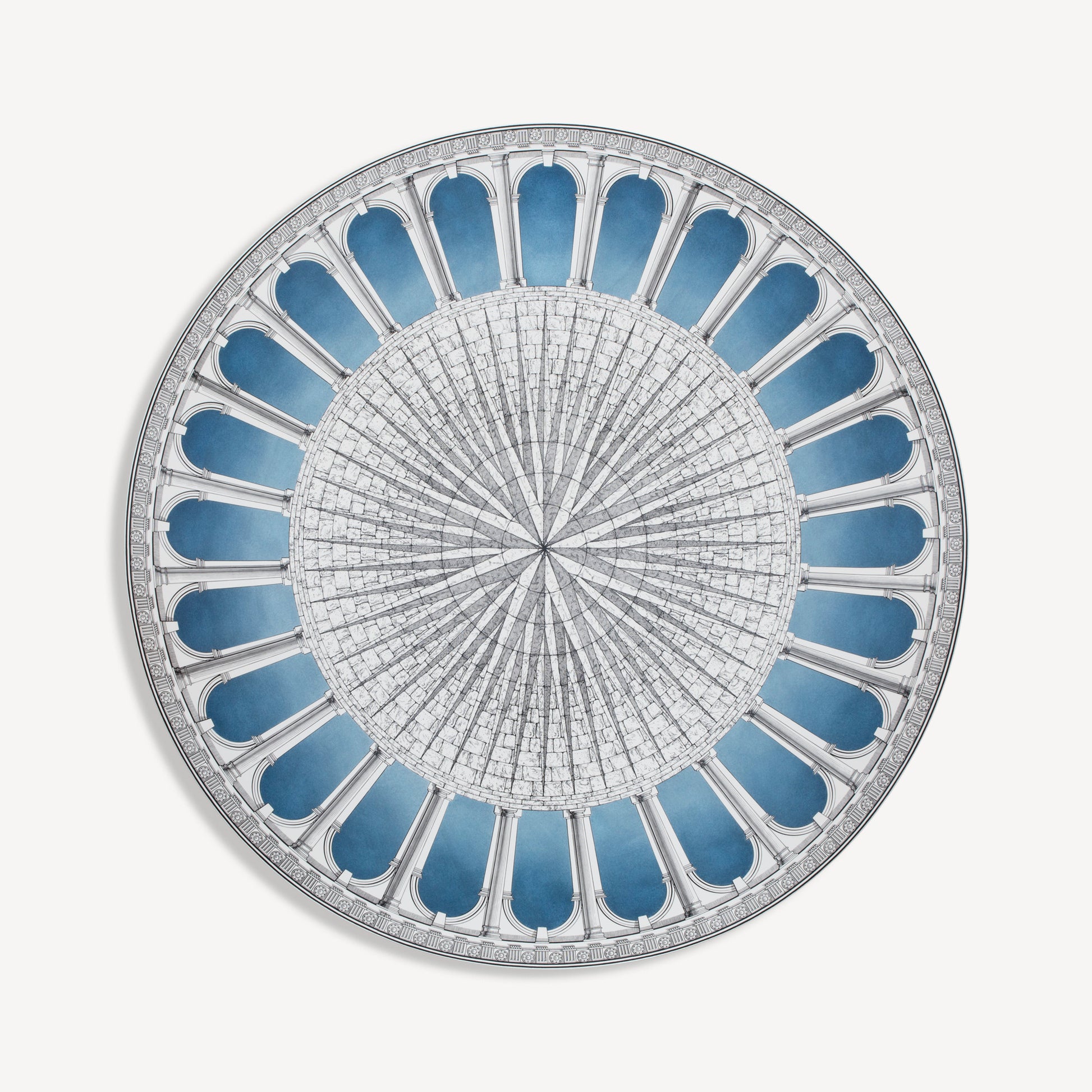 - Il decoro Architettura Celeste è una variazione dello storico motivo Architettura in bianco e nero ideato negli anni Cinquanta e si staglia come protagonista assoluto di questo pannello in legno serigrafato, dipinto e laccato a mano, che può essere appeso a parete.