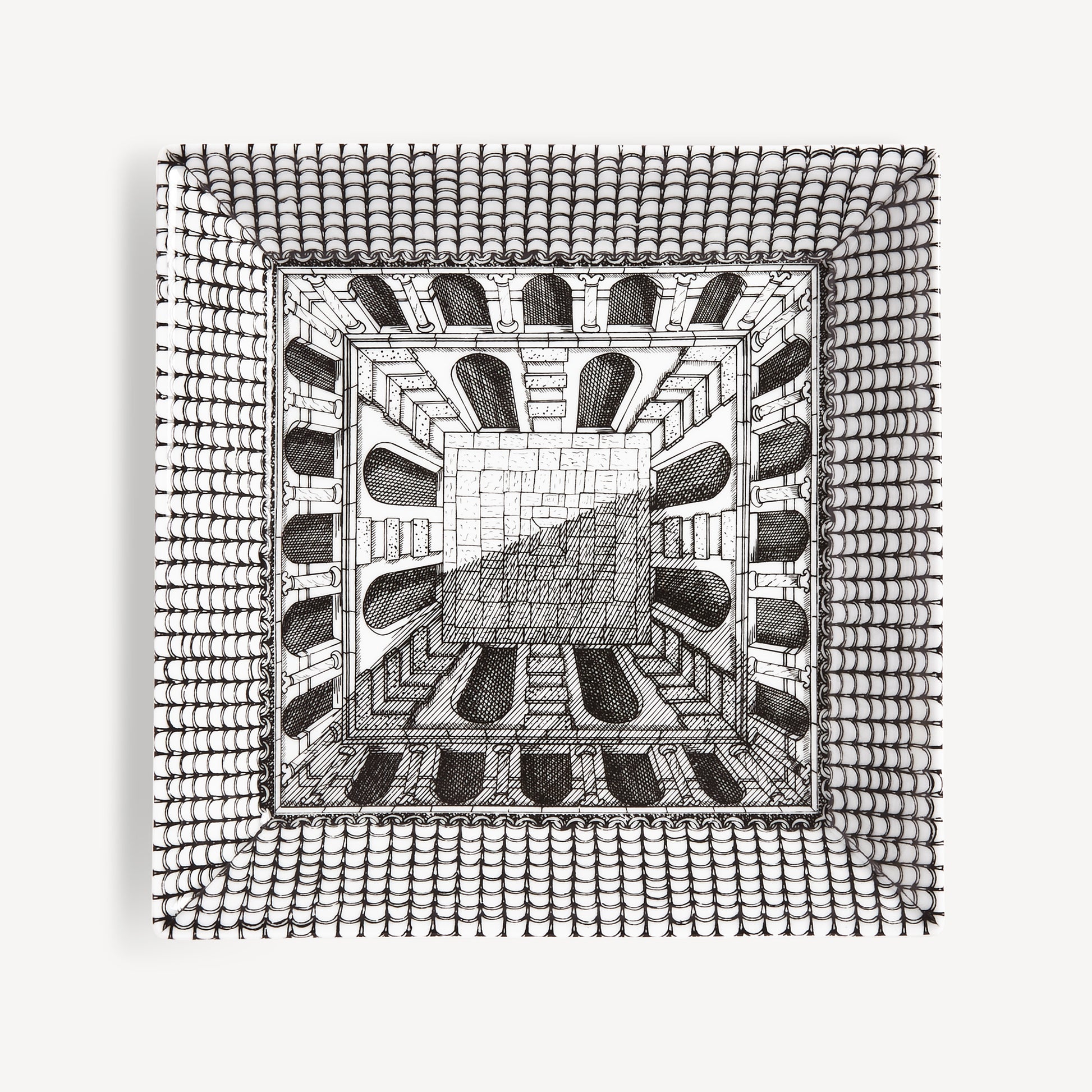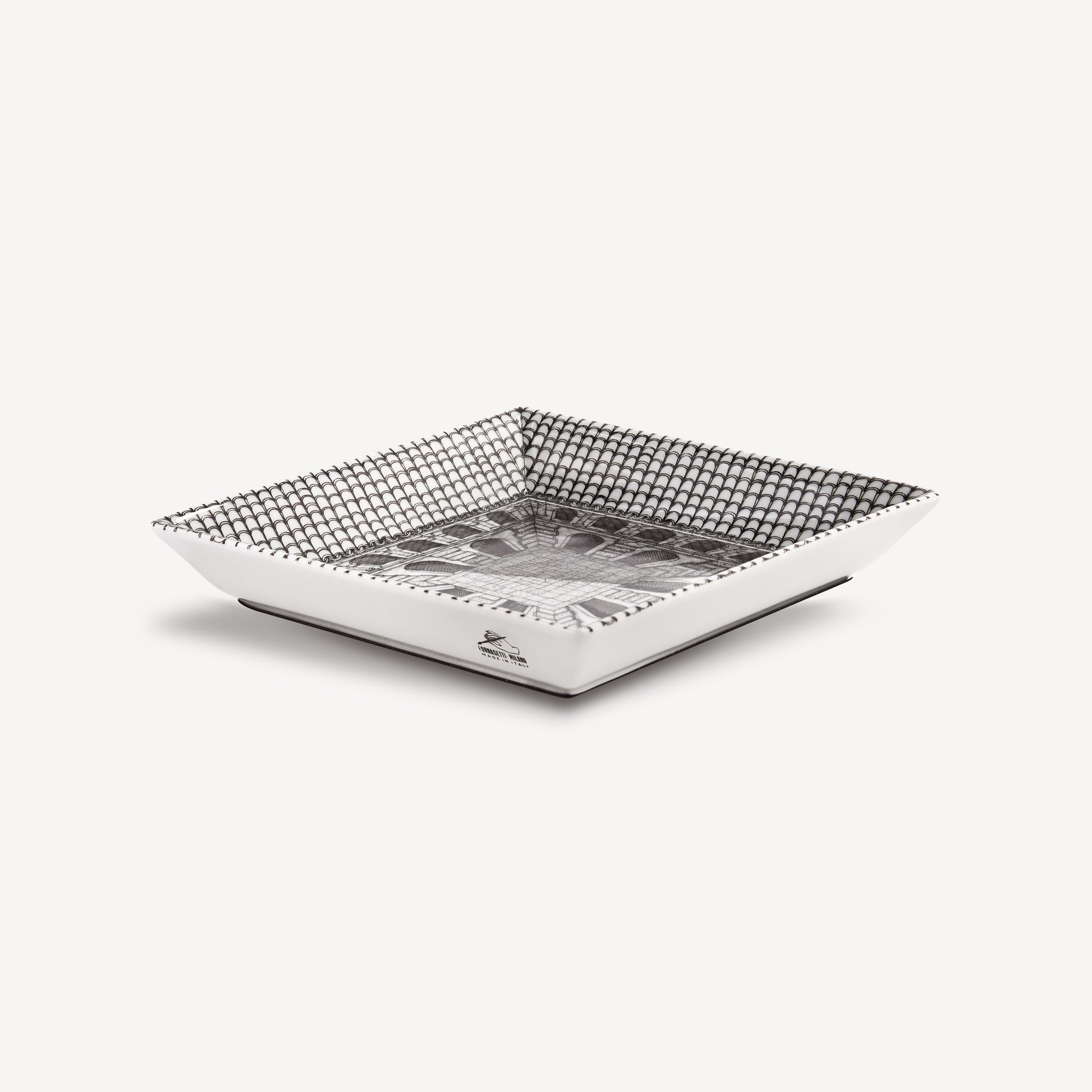 - L'architettura è un campo molto amato da Fornasetti per i suoi decori, come dimostra questo vide-poche quadrato in porcellana decorata a mano. Un oggetto funzionale e decorativo, perfetto come svuotatasche o semplice accento d’arredo.