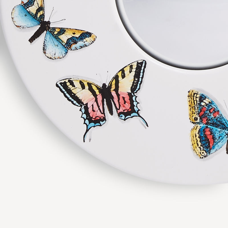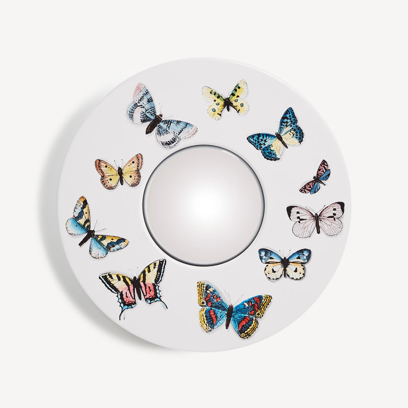 Le farfalle abitano l’universo Fornasetti fin dai primi esperimenti negli anni Quaranta. Il tratto nero ne delinea i contorni, le mani sapienti dei pittori dell’Atelier le dipingono ancora oggi seguendo i modelli colore originali.