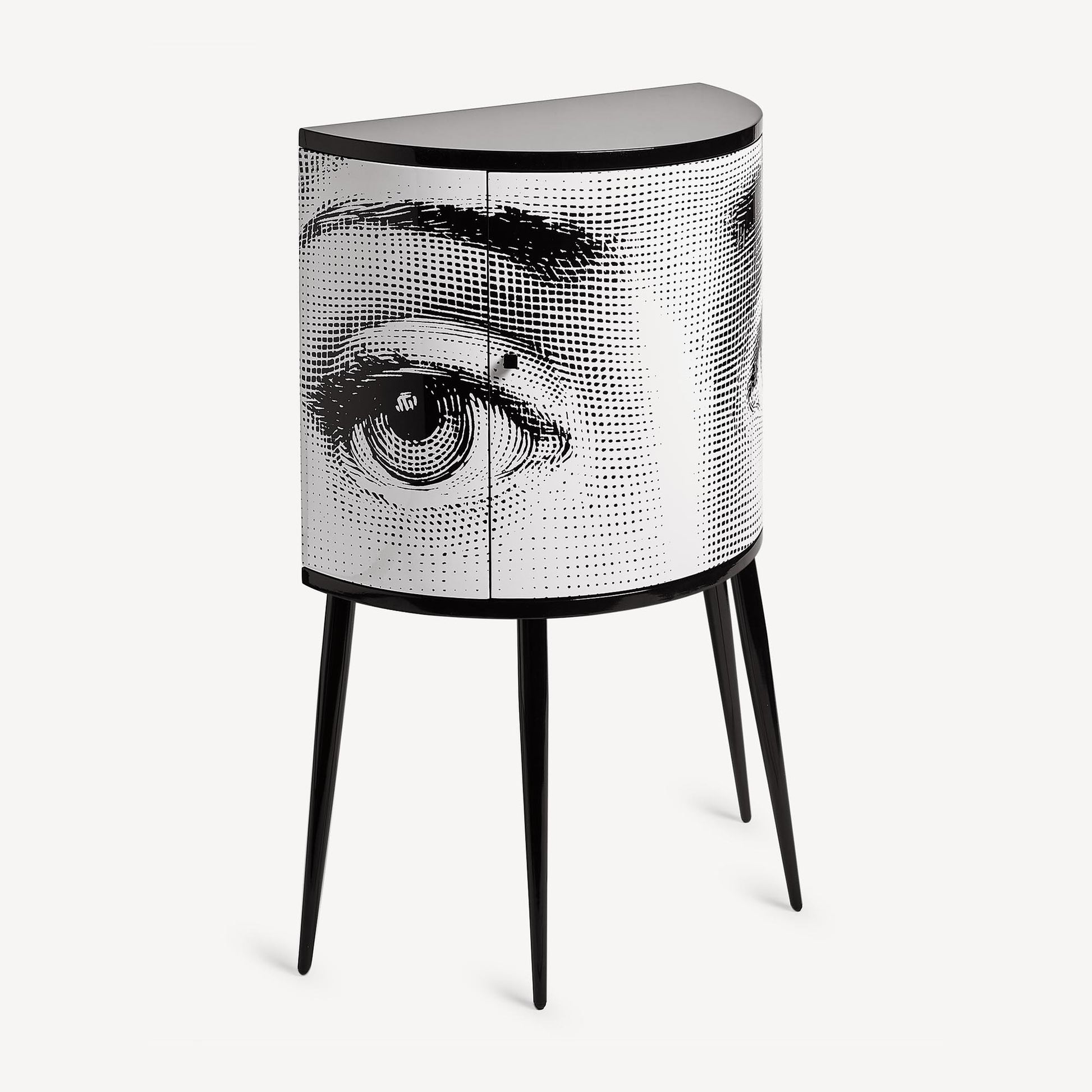 - Questo mobile contenitore è realizzato in legno decorato a mano. Ideale per portare negli ambienti di casa la forza creativa dell'immaginazione fornasettiana, rende omaggio al viso di Lina Cavalieri.