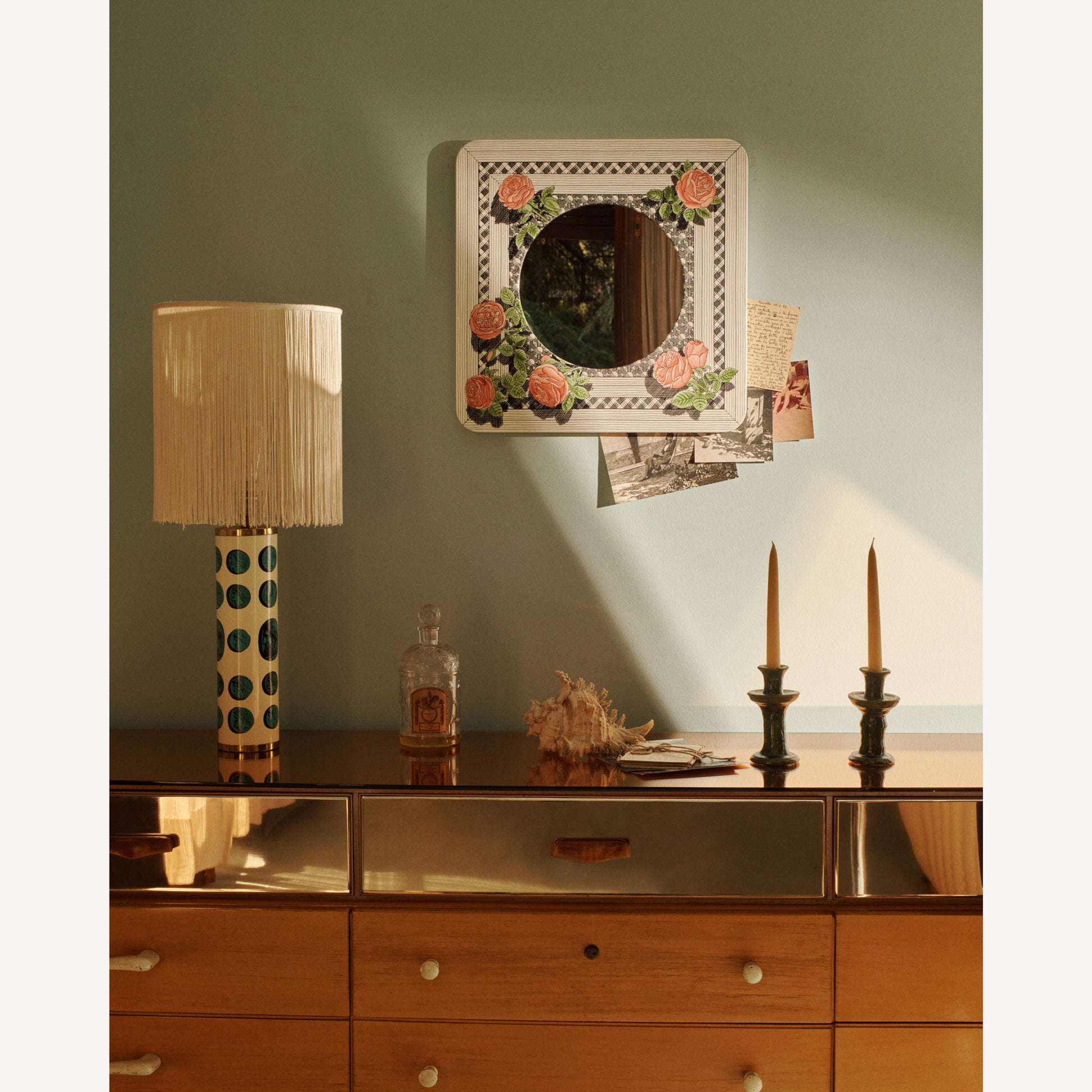 Cornice con specchio piatto Musciarabia con rose
