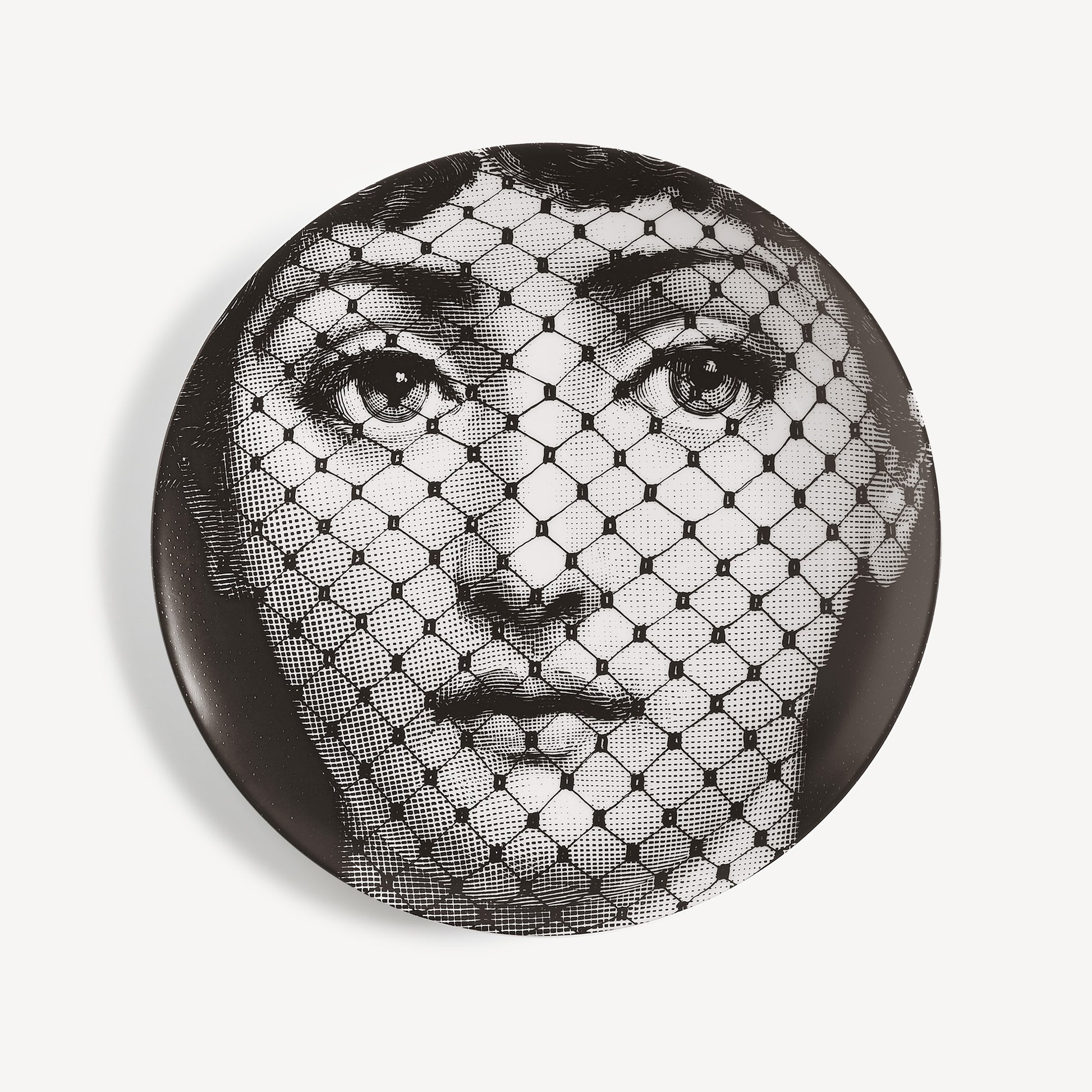 - Il volto della cantante lirica Lina Cavalieri, icona protagonista di innumerevoli reinterpretazioni da parte di Piero Fornasetti, impreziosisce questo piatto in porcellana decorato a mano e appartenente alla serie Tema e Variazioni: un vero pezzo da collezione, che potrai utilizzare come piatto da parete, grazie alla presenza di due fori sul retro, ma anche con funzione ornamentale per l'arte della tavola. Per la pulizia si raccomanda l'utilizzo di un panno umido senza detergente.