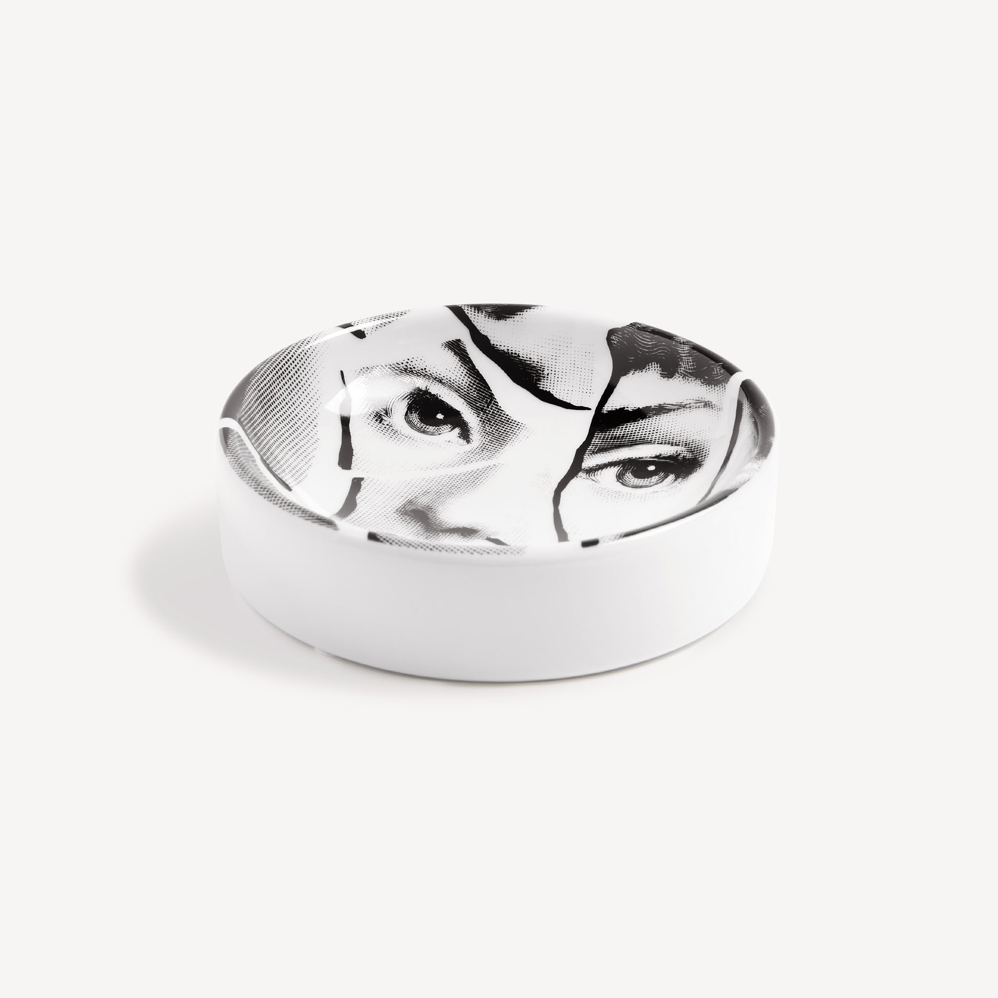 - The face of opera singer Lina Cavalieri, the iconic protagonist of countless reinterpretations by Piero Fornasetti, embellishes this round, hand-decorated porcelain ashtray belonging to the Tema e Variazioni series: an everyday object thus becomes a true collector's item.