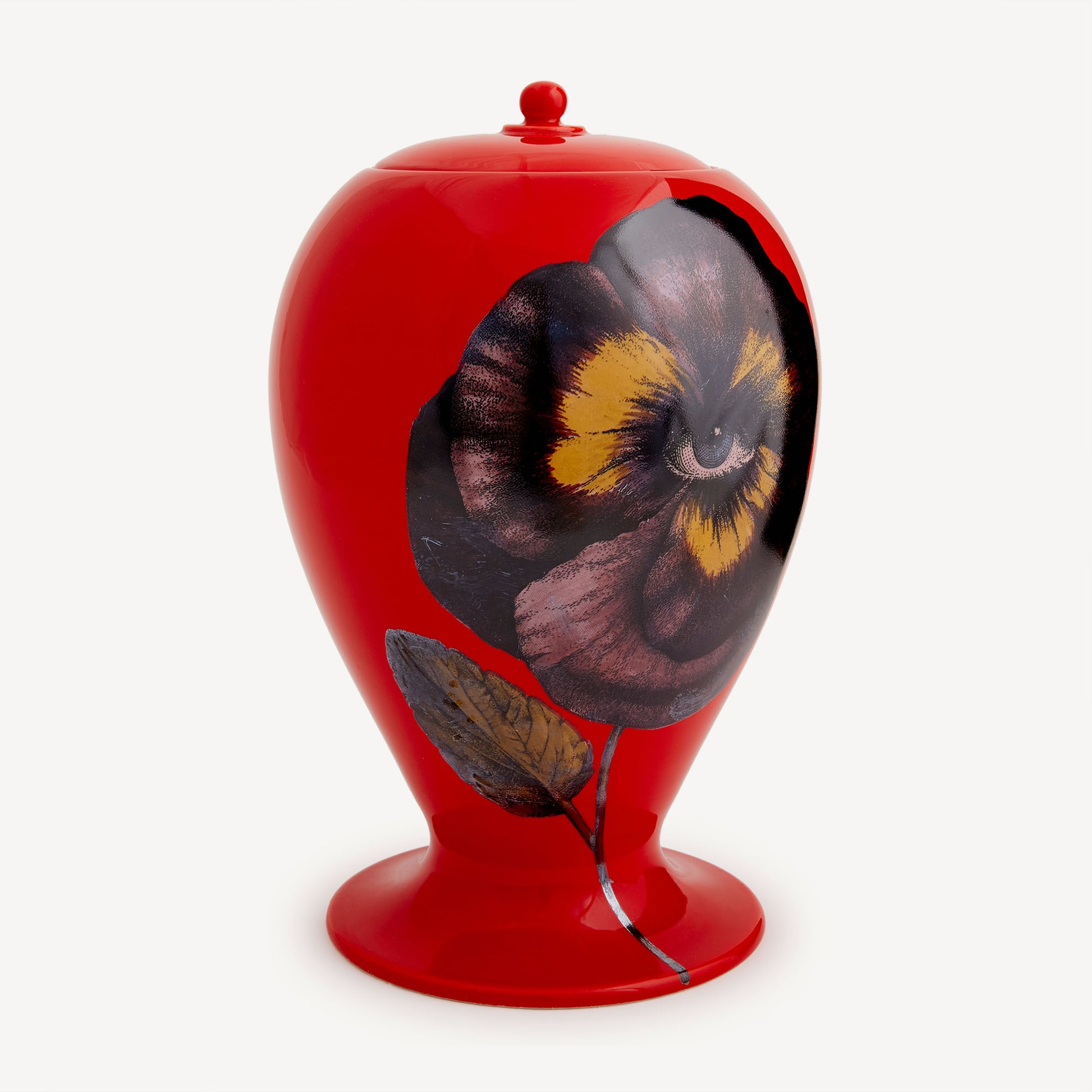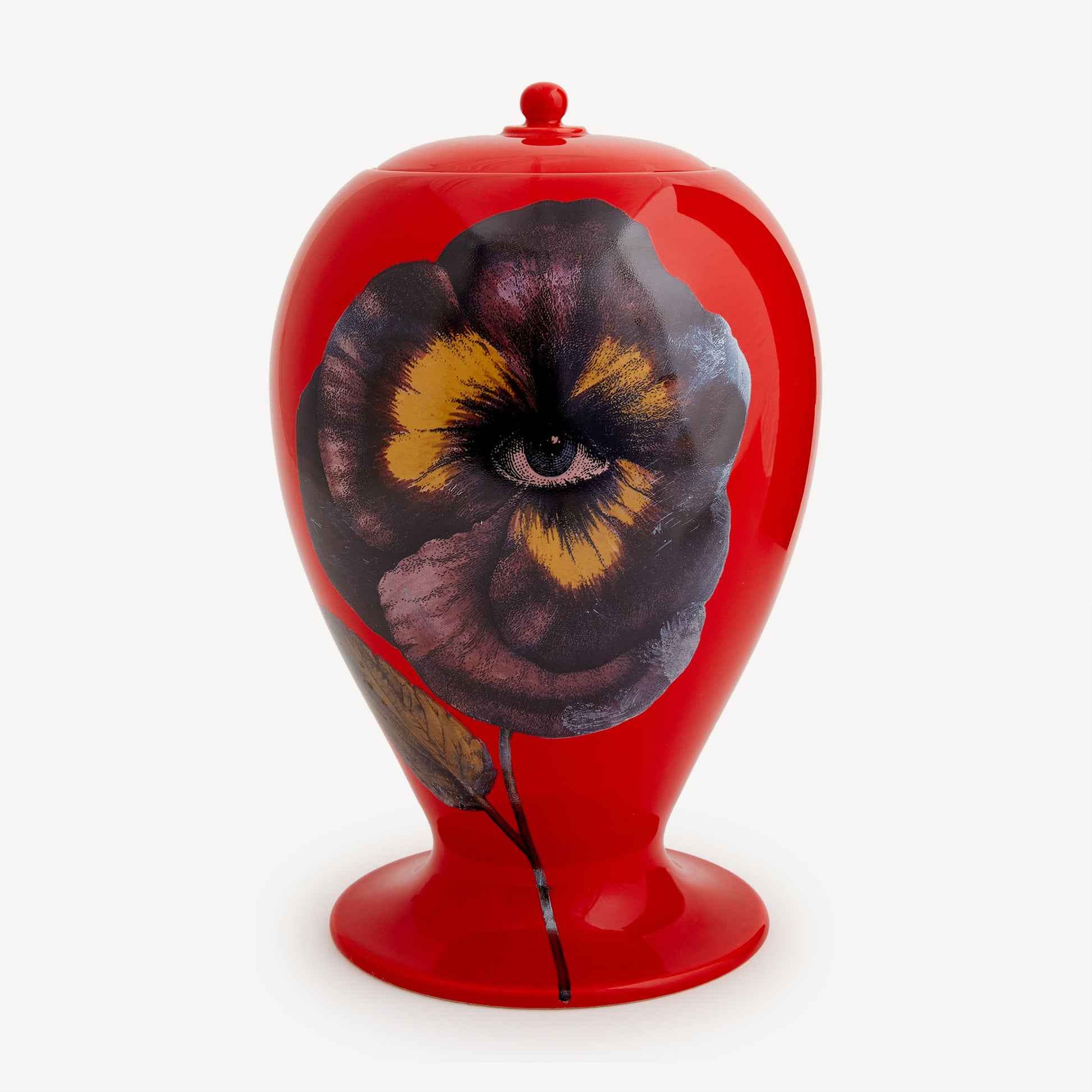 - Based on a painting by Piero Fornasetti, this decoration was later reworked to become a subject within the Tema e Variazioni series: here it adorns a colourful, hand-decorated and painted ceramic vase.