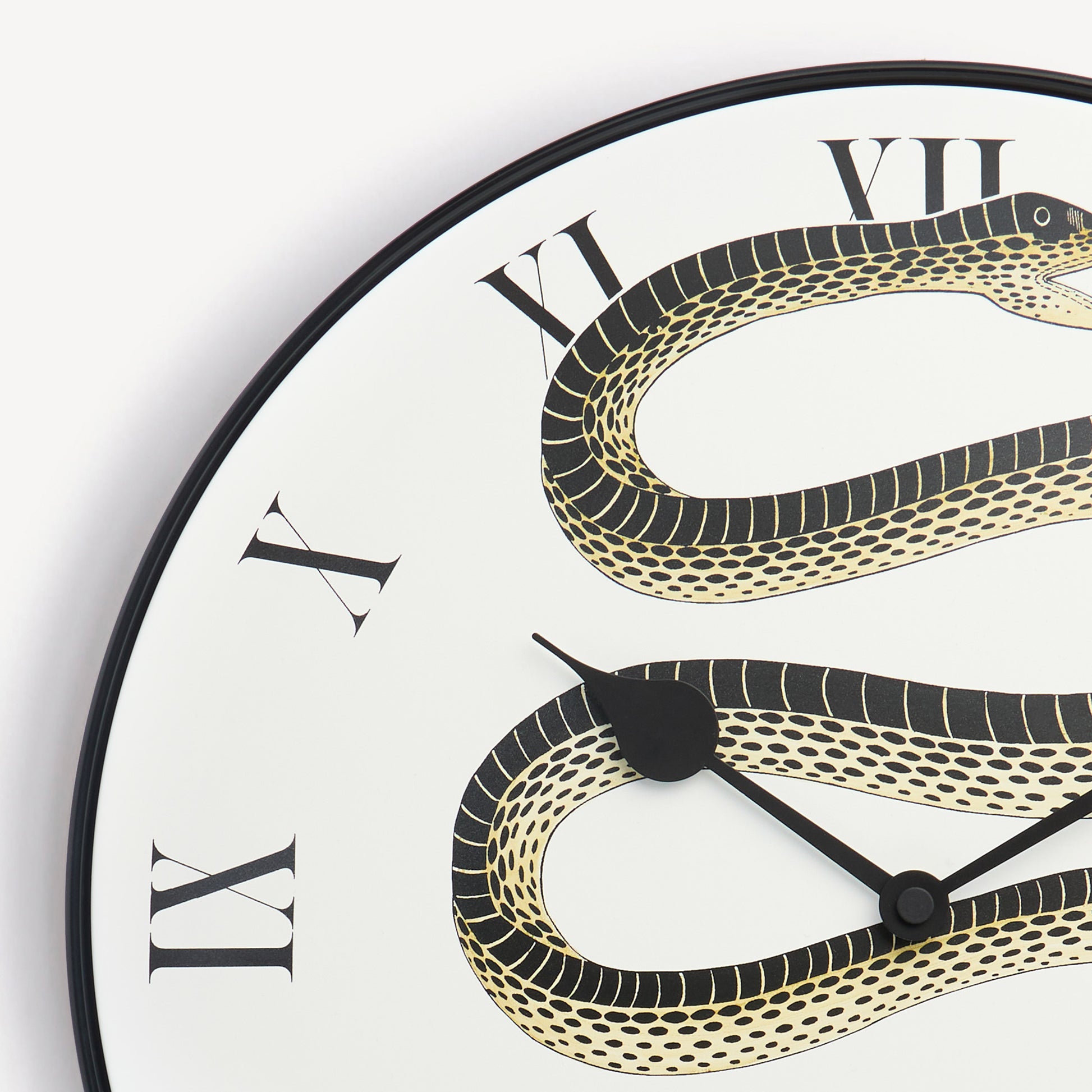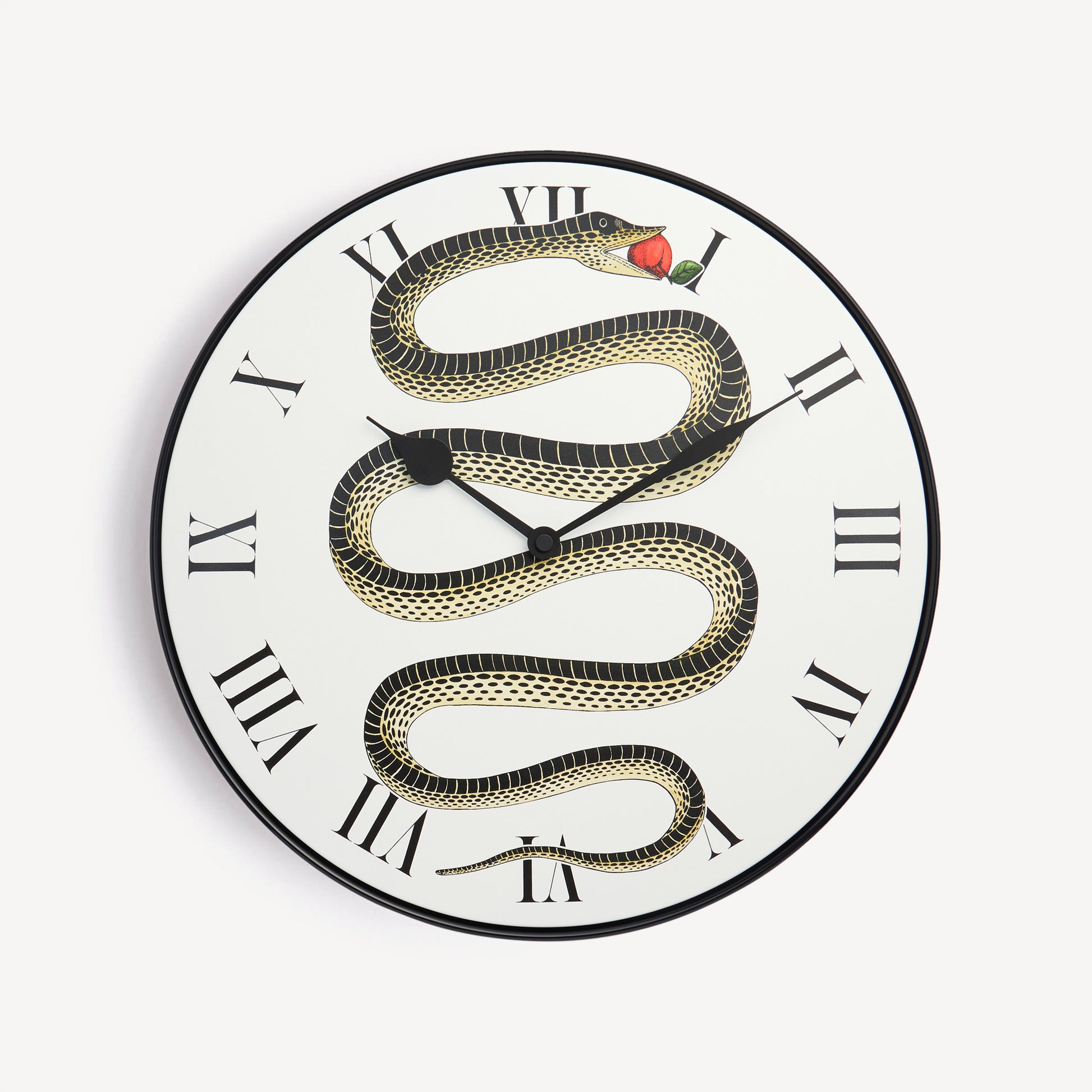 - Fornasetti loves archetypes: the sinuous forms of the serpent call to mind the story of Eden, combining elegance and irony into this round wall clock.