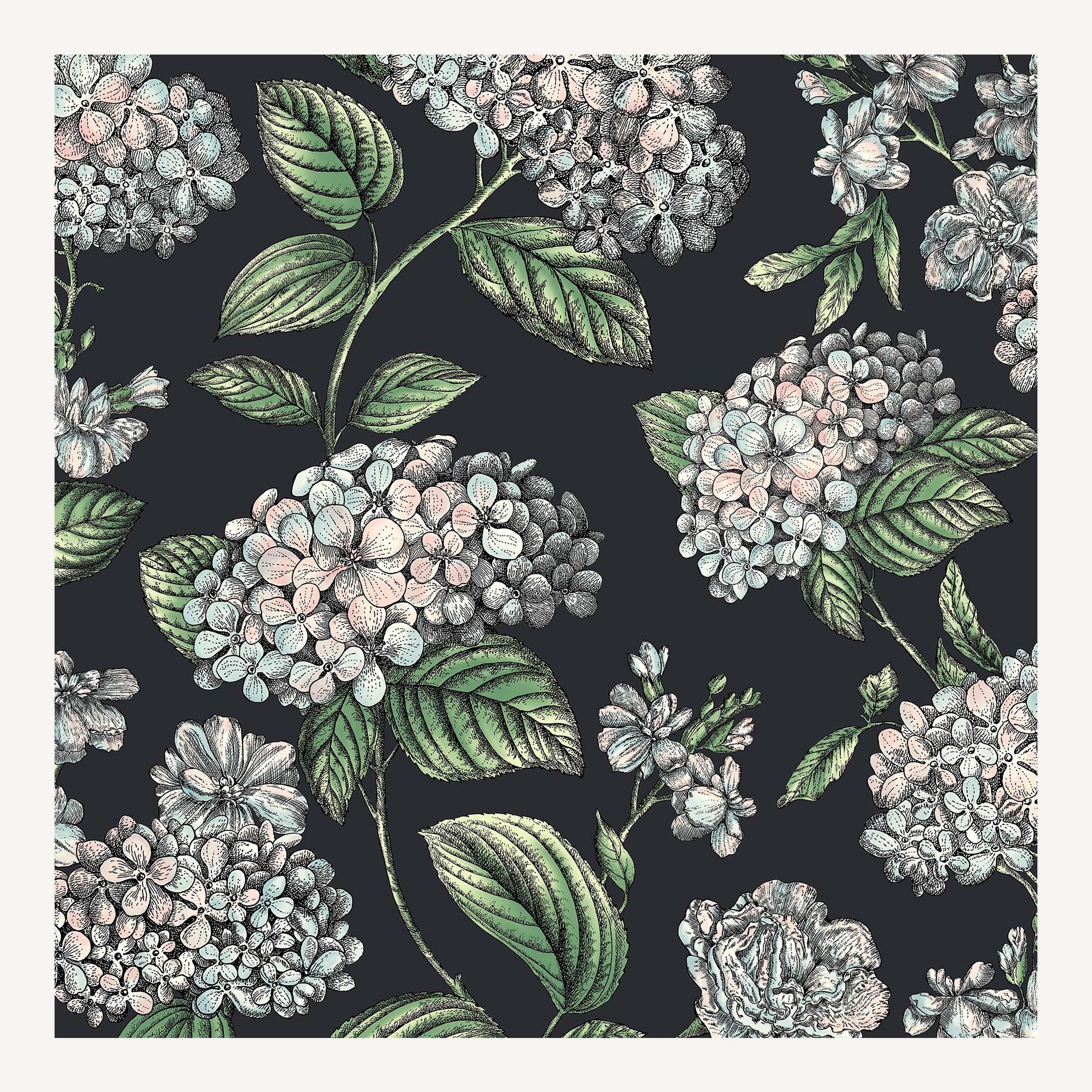 - This design is based upon the abundant hydrangea bushes that grow in the garden that surrounds the Fornasetti house in Milan.