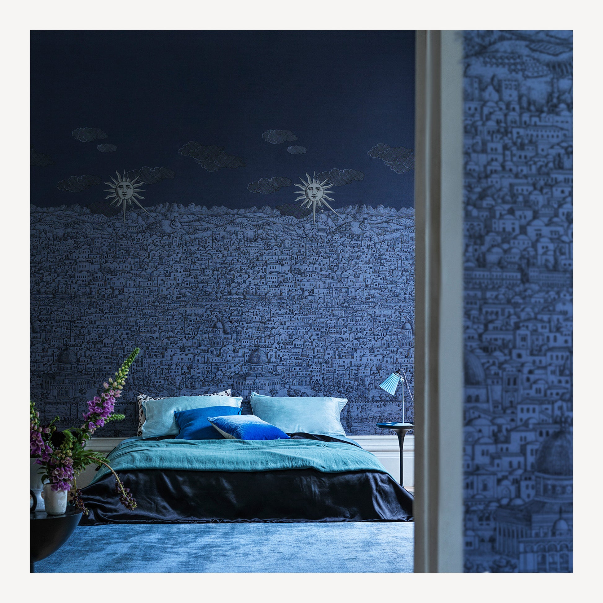 A bright cerulean sky gives way to a deep tanzanite as the scene is taken from day to night, with the introduction of a lustred mica for this midnight palette bringing the most subtle details to the fore.
