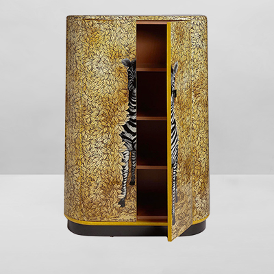 Fornasetti furniture exists in a state of harmony between art and design. Dreams take the shape of furniture and surfaces become canvases on which to depict parallel worlds. The decoration is superimposed on the form and the form inspires the decoration, in a continuous interplay that challenges conventions and creates space for artistic flair. Thus surprising visual atmospheres are born, perspectives are reversed, proportions recede and the eye ends up being seduced.